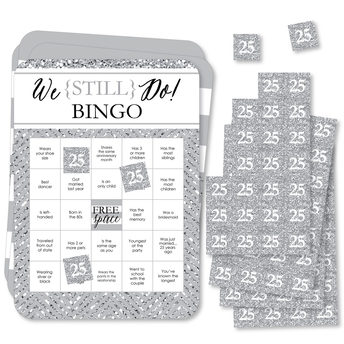 Big Dot of Happiness We Still Do - 25th Wedding Anniversary - Find the Guest Bingo Cards and Markers - Anniversary Party Bingo Game - Set of 18