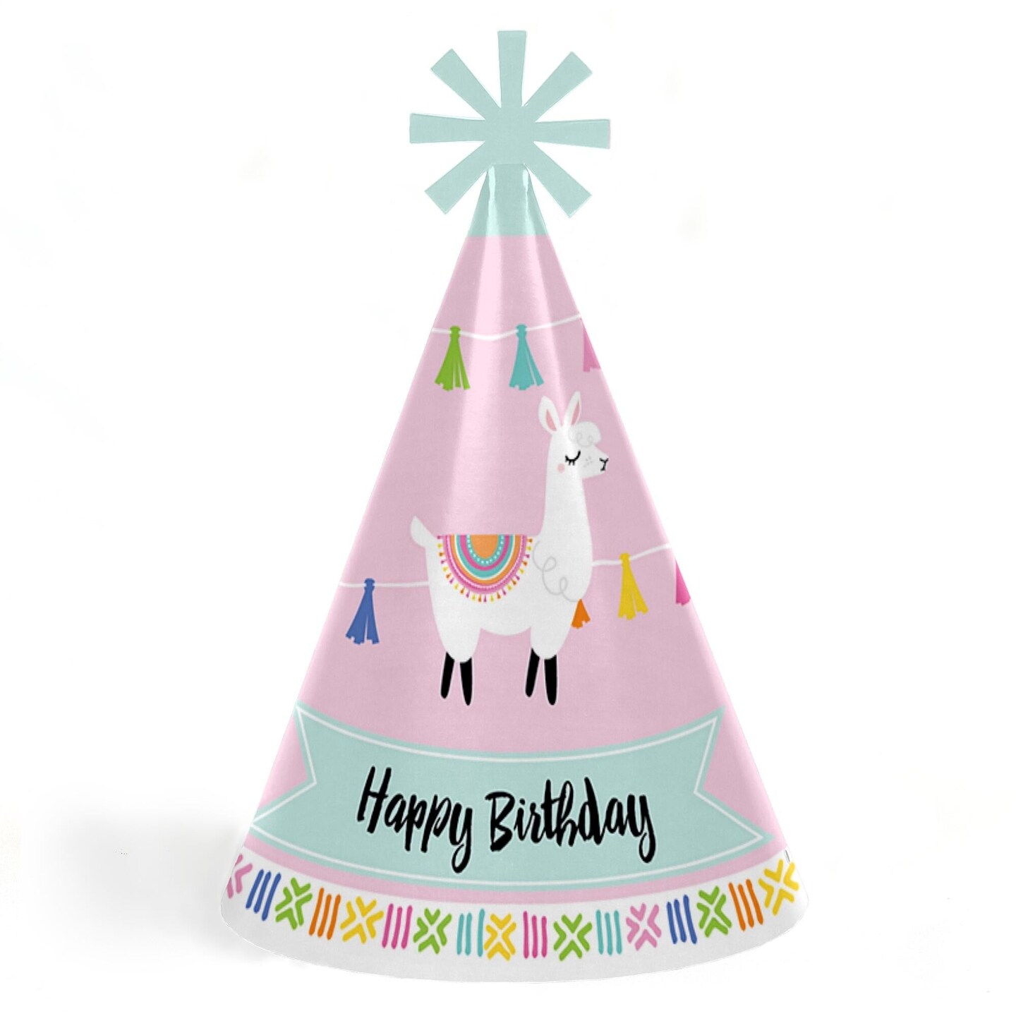 Big Dot of Happiness Whole Llama Fun - Cone Happy Birthday Party Hats for Kids and Adults - Set of 8 (Standard Size)
