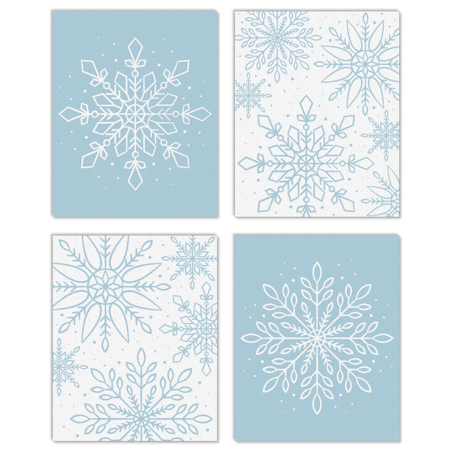 Big Dot of Happiness Winter Wonderland - Unframed Snowflake Holiday Linen Paper Wall Art - Set of 4 - Artisms - 8 x 10 inches