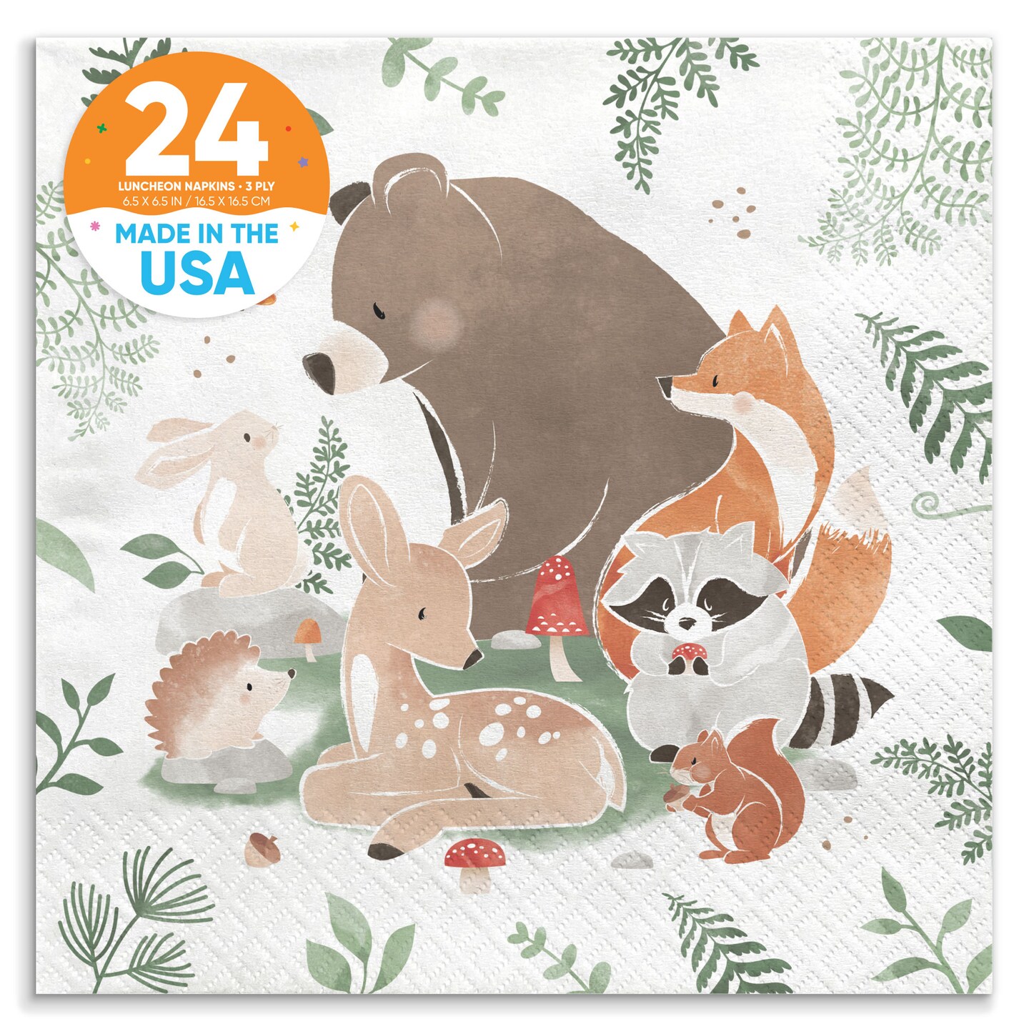 Big Dot of Happiness Woodland Animals Napkins, Forest Baby Shower or Birthday Party Decor, White 3-Ply Paper Luncheon Dinner Napkins - 24 Count