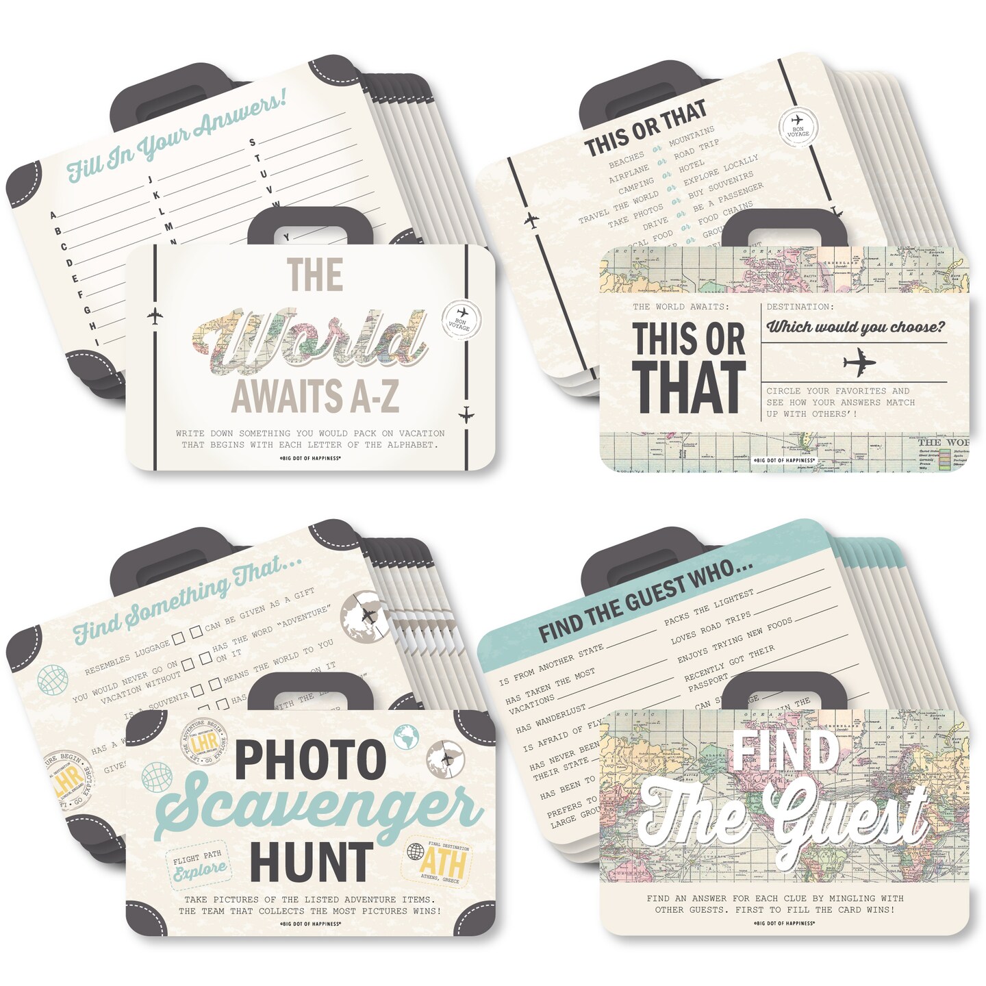 Big Dot of Happiness World Awaits - 4 Travel Themed Party Games - 10 Cards Each - Gamerific Bundle