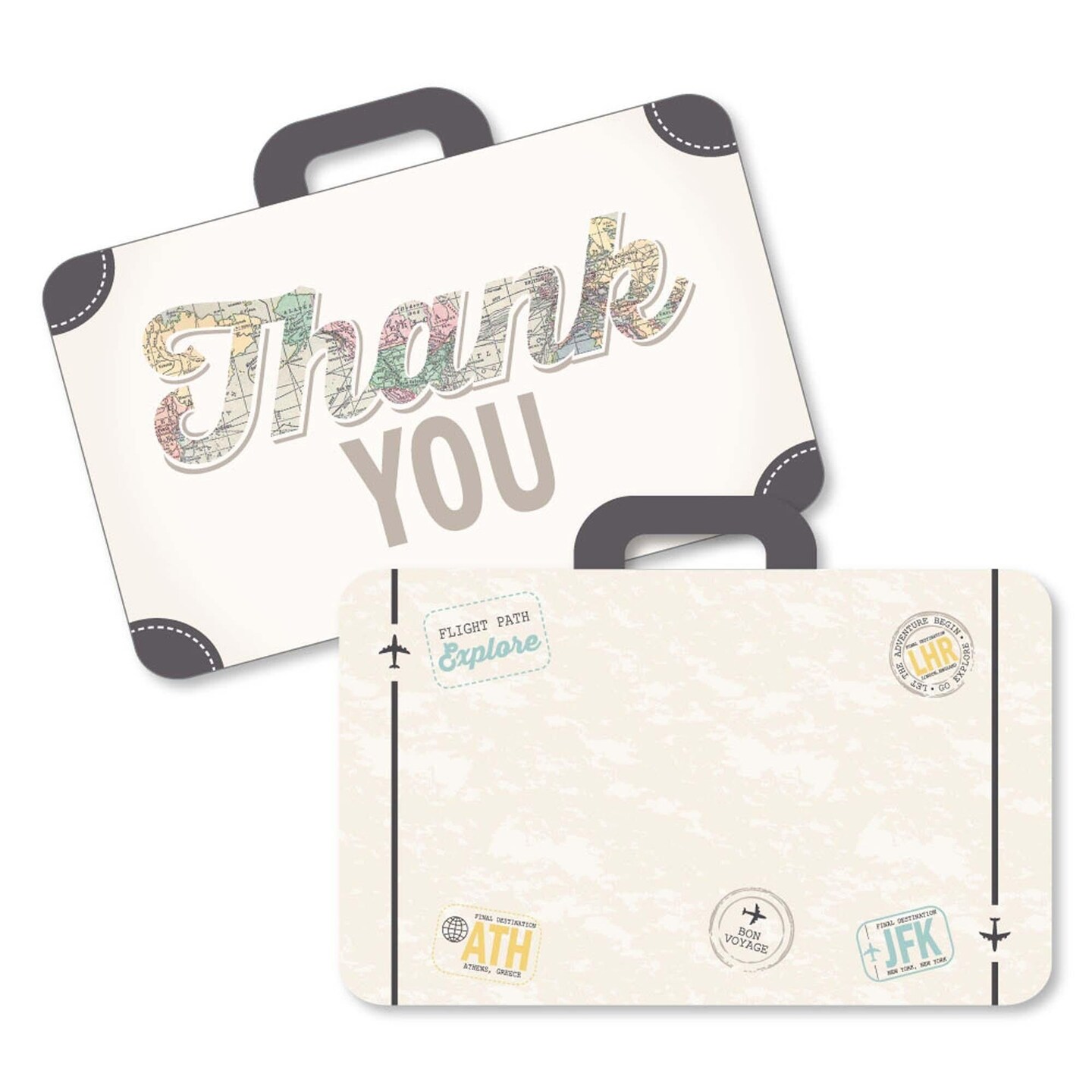 Big Dot of Happiness World Awaits - Shaped Thank You Cards - Travel Themed Party Thank You Note Cards with Envelopes - Set of 12
