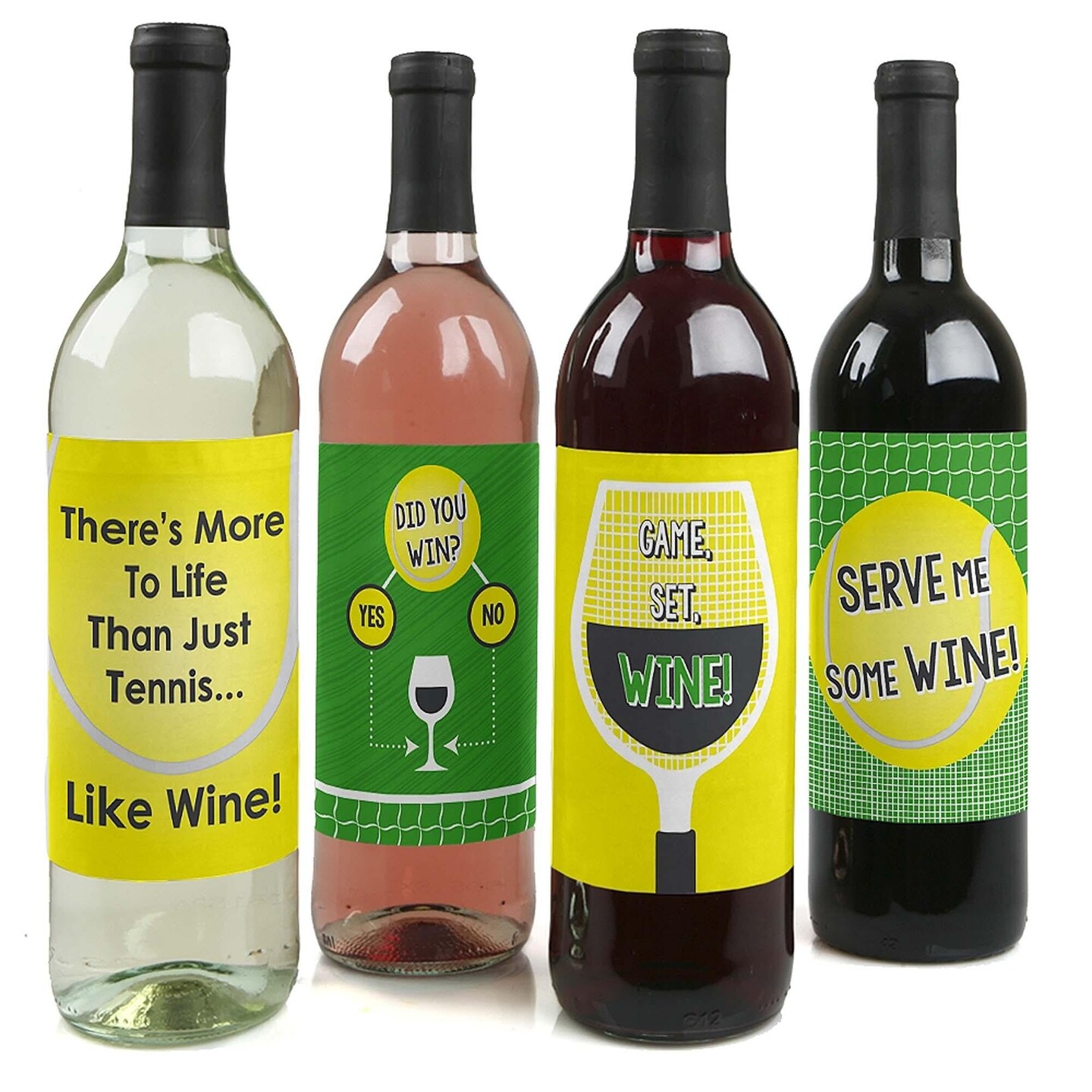 Big Dot of Happiness You Got Served - Tennis Decorations for Women and Men - Tennis Ball Party Wine Bottle Label Stickers - Set of 4