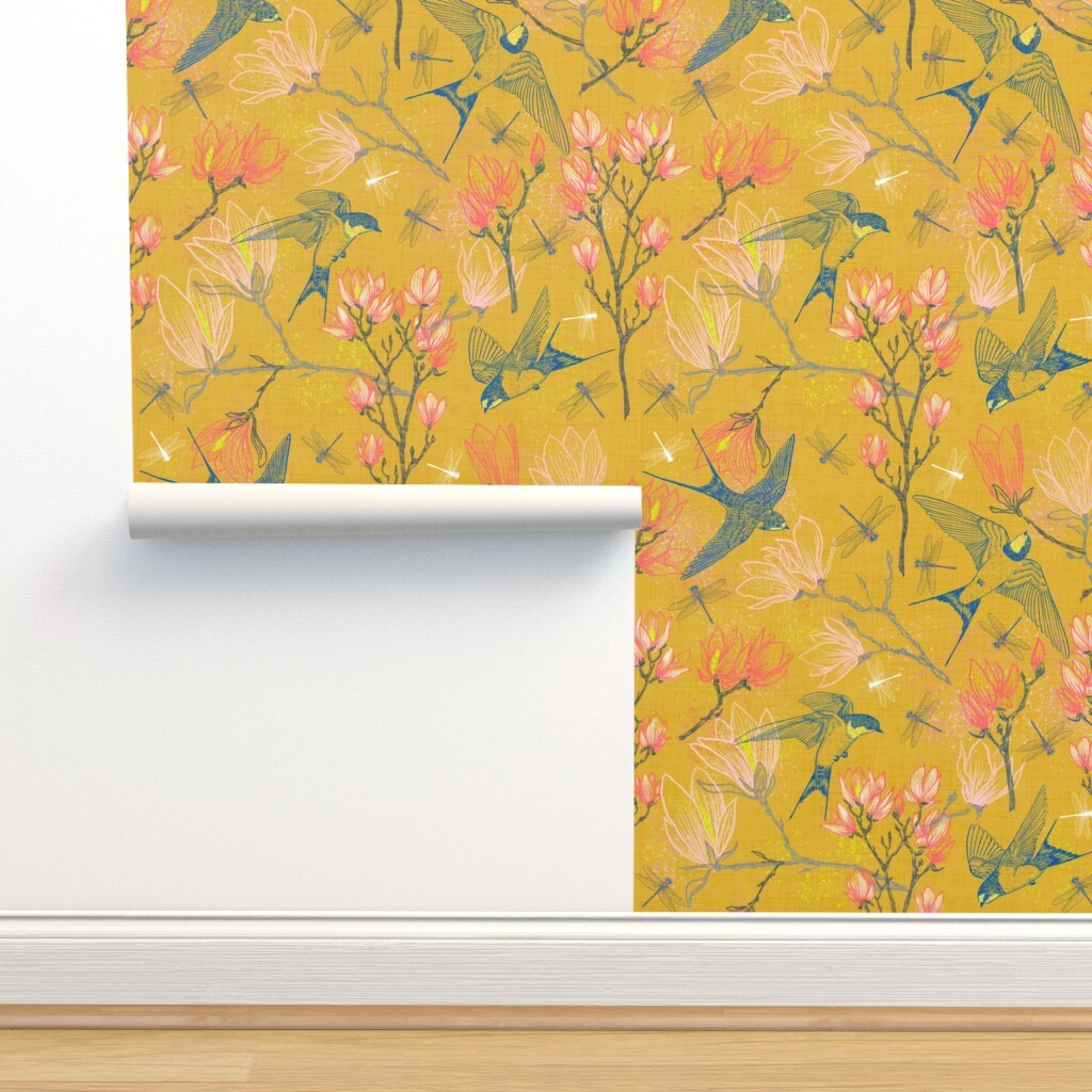 Bird Floral Animals Spring Dragonflies Nature Botanical Custom Removable Wallpaper by Spoonflower Peel & Stick Wallpaper 2FT Wide