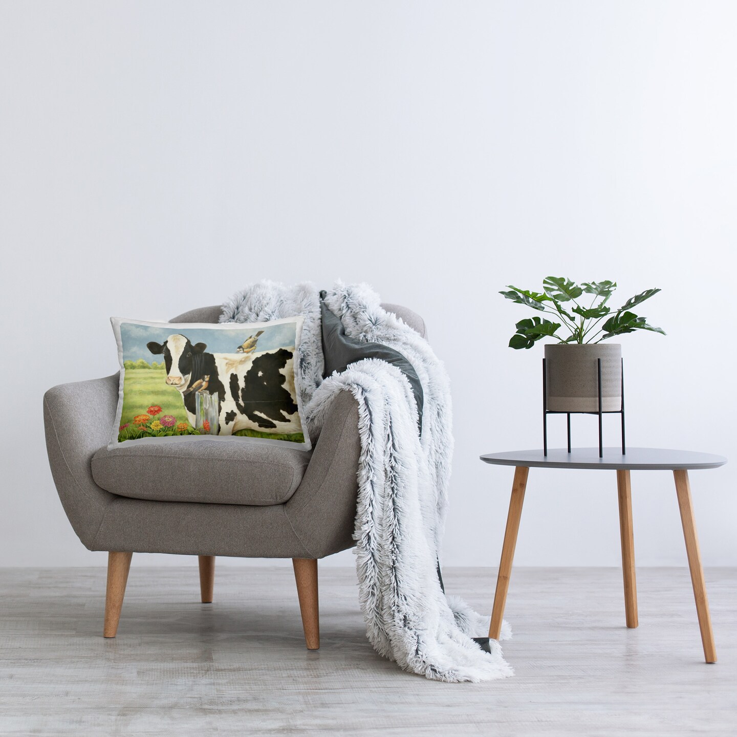 Bird Perched on Cow Design by Gwendolyn Babbitt Holstein Throw Pillow