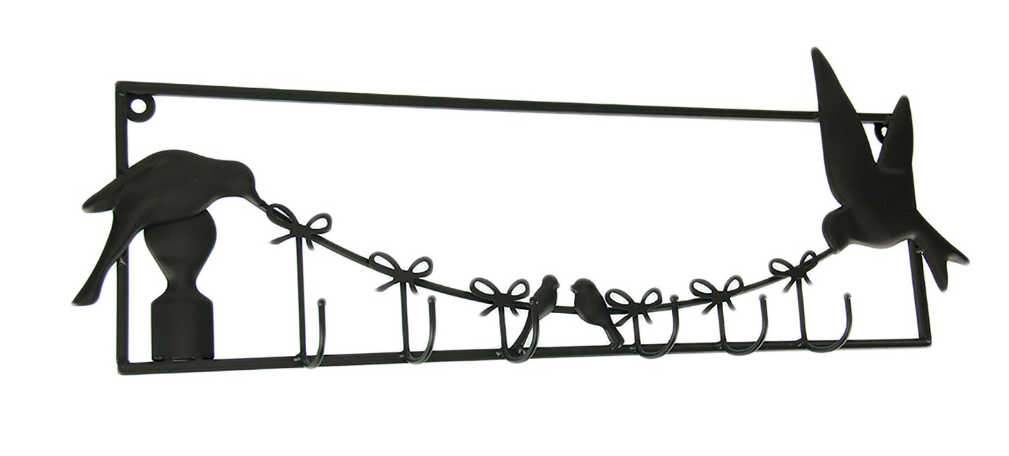 Birds and Bows Rustic Brown Metal Wall Sculpture with Hooks