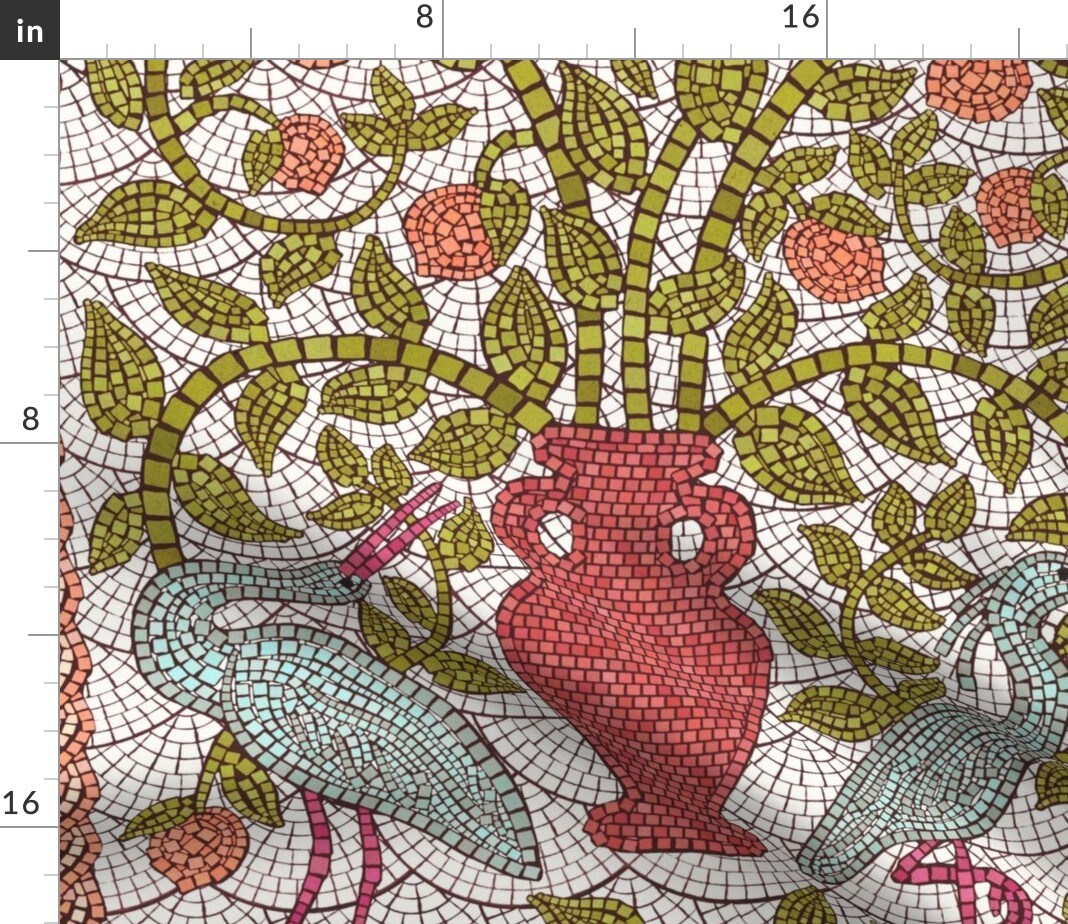 Birds Stone Fruit Art Deco Lemon Crane Heron Peaches Arts And Crafts Amphora Tree Faux Mosaic Large Scale Custom Printed Fabric by Spoonflower Various Fabrics by the Yard or Fat Quarter