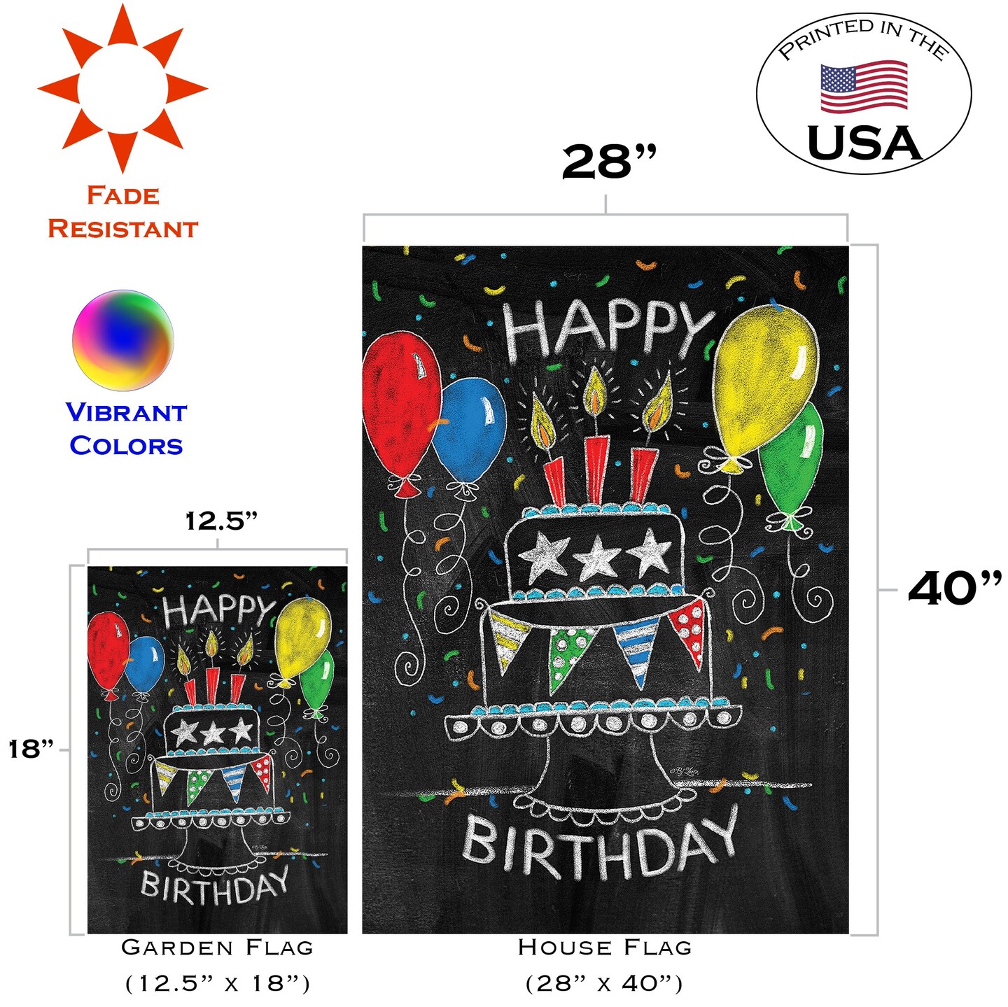 Birthday Cake Chalkboard Decorative Birthday Double Sided Flag
