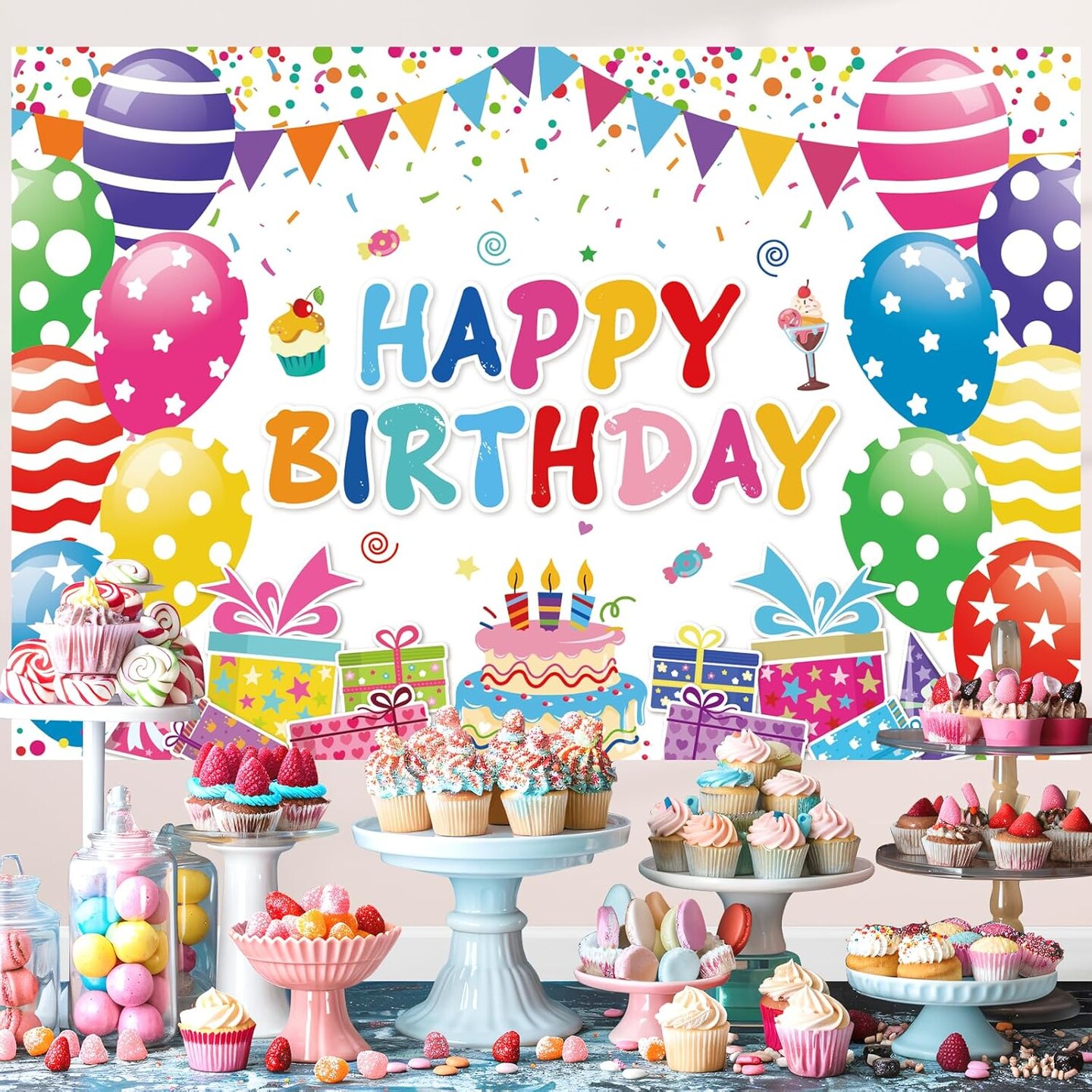 Birthday Decorations Kit, Birthday Party Banner, Honeycomb Balls, Metallic Hanging Swirls, Circle Garland, Colorful Birthday Decorations