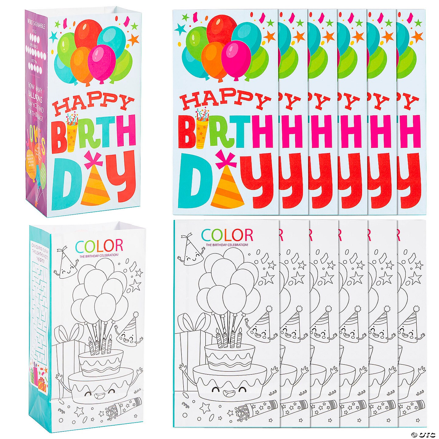 Birthday Party Activity Paper Treat Bags 5 1/4" x 10" - 12 Pc.