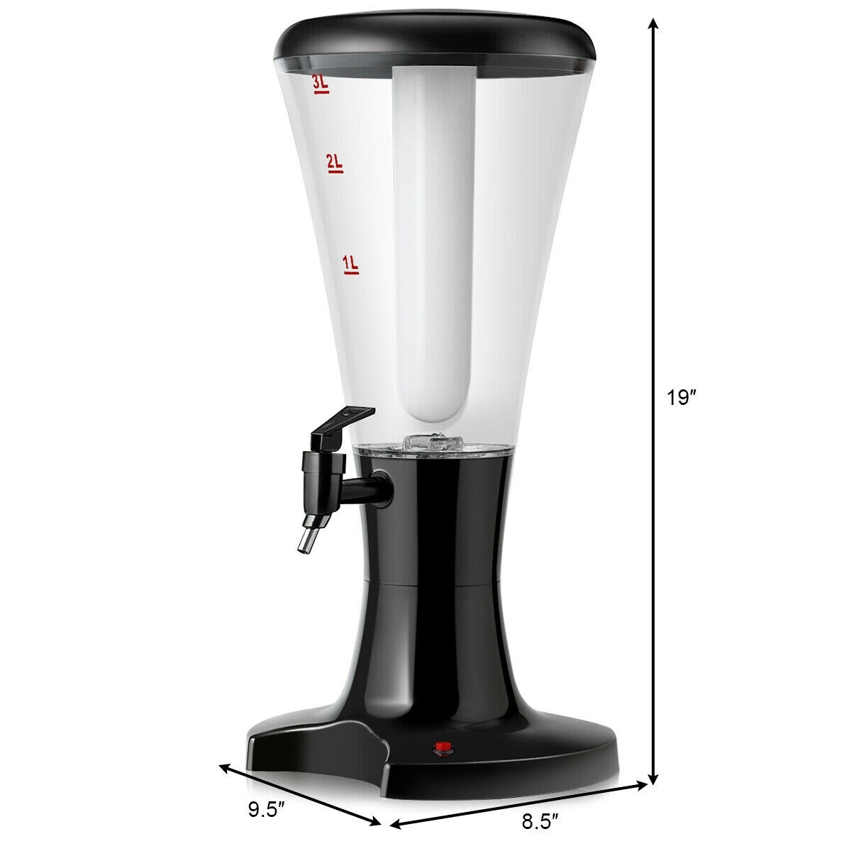 Black 3L Beverage Dispenser Set of 2 with Removable Ice Tube and LED Lights