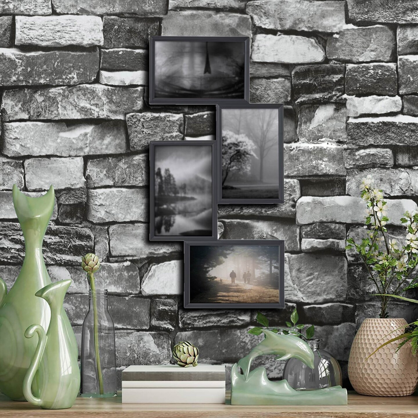 Black 4-Photo Collage Frame 8¼" x 16¼" – Versatile Vertical or Horizontal Hanging, Durable Lightweight Plastic