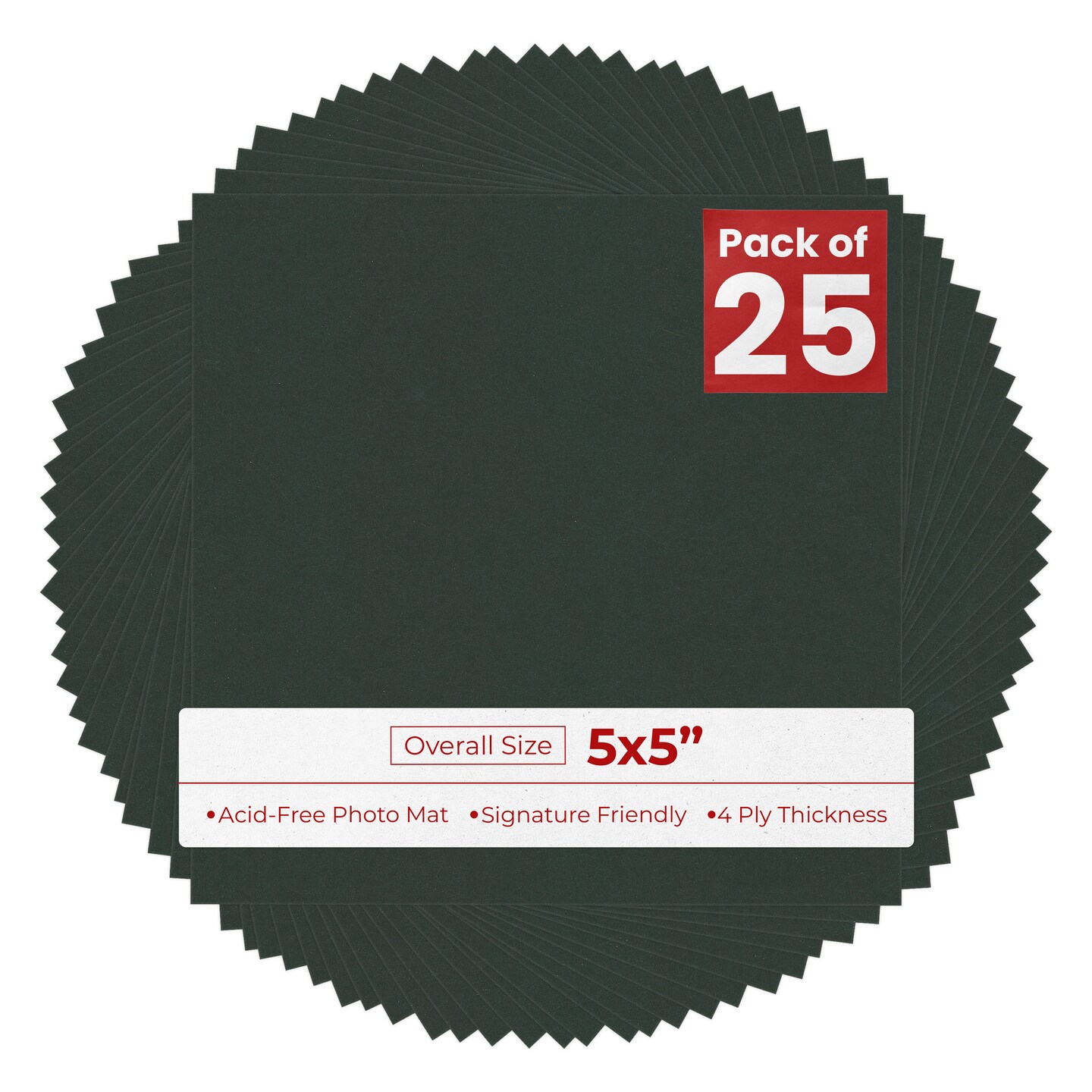Black 5x5 Inch Uncut Mat Board - Blank Sheets, No Opening