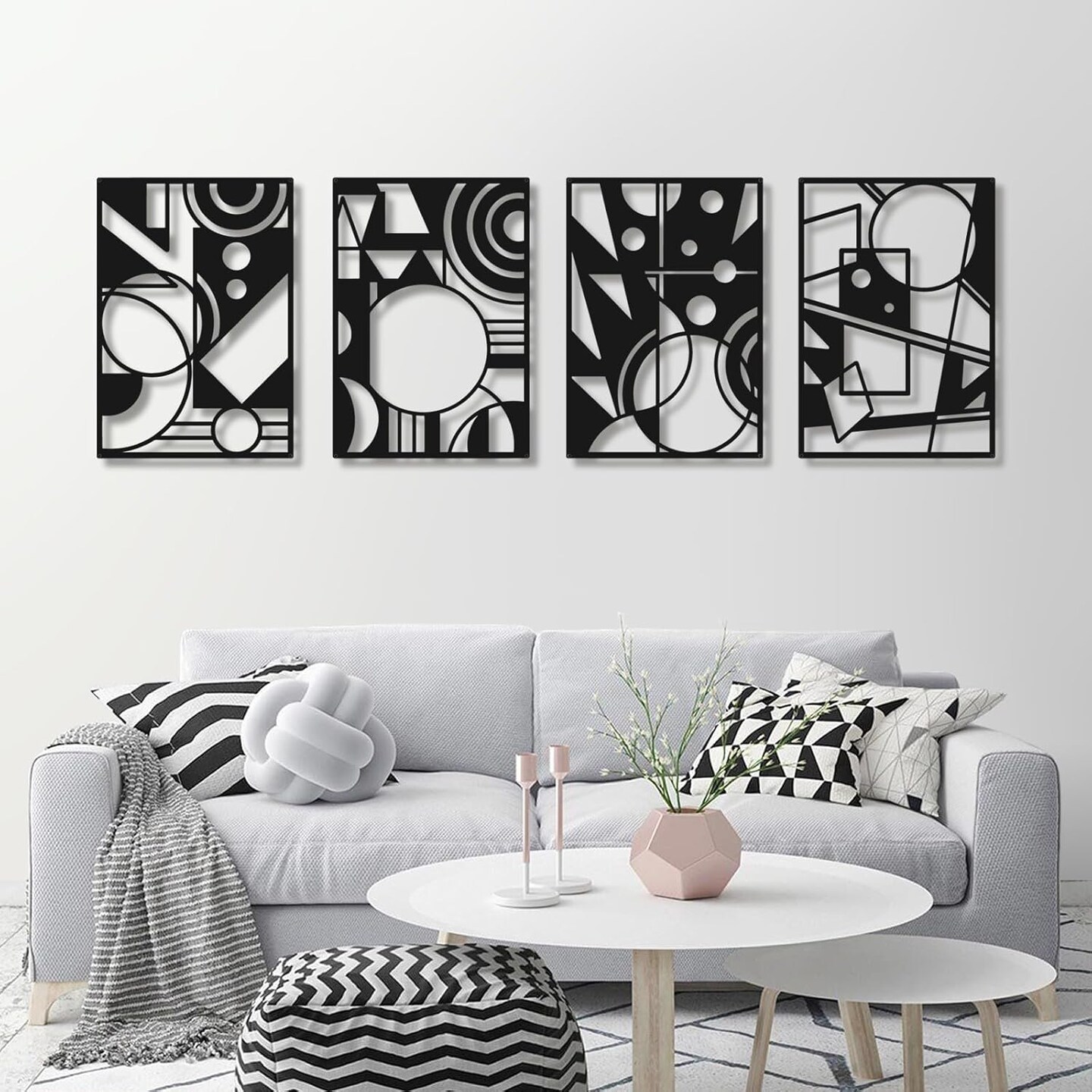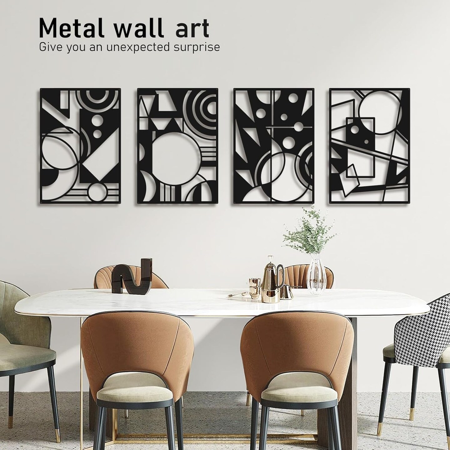 Black Abstract Wall Art, Metal Art Wall Decor, Large Geometry Wall Art