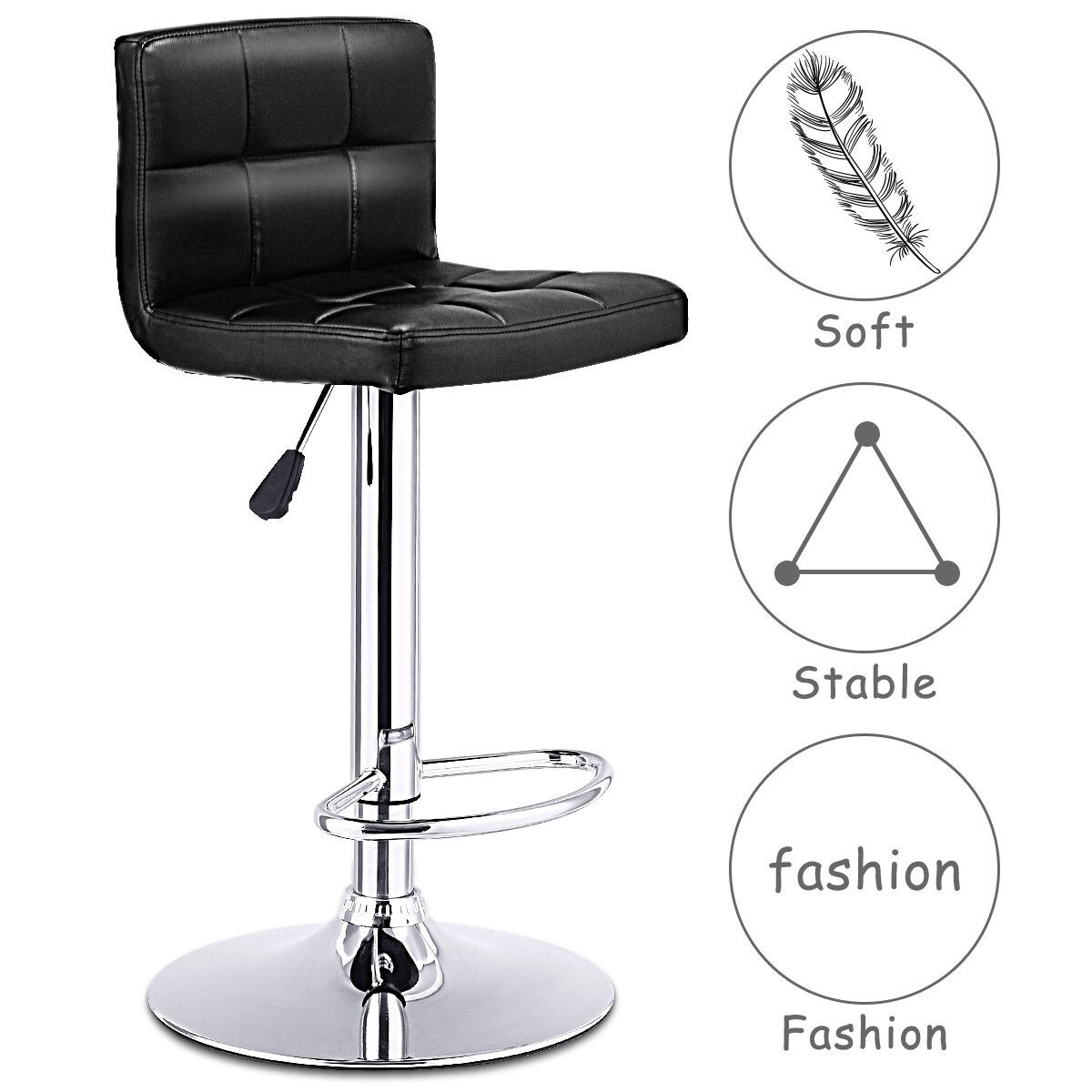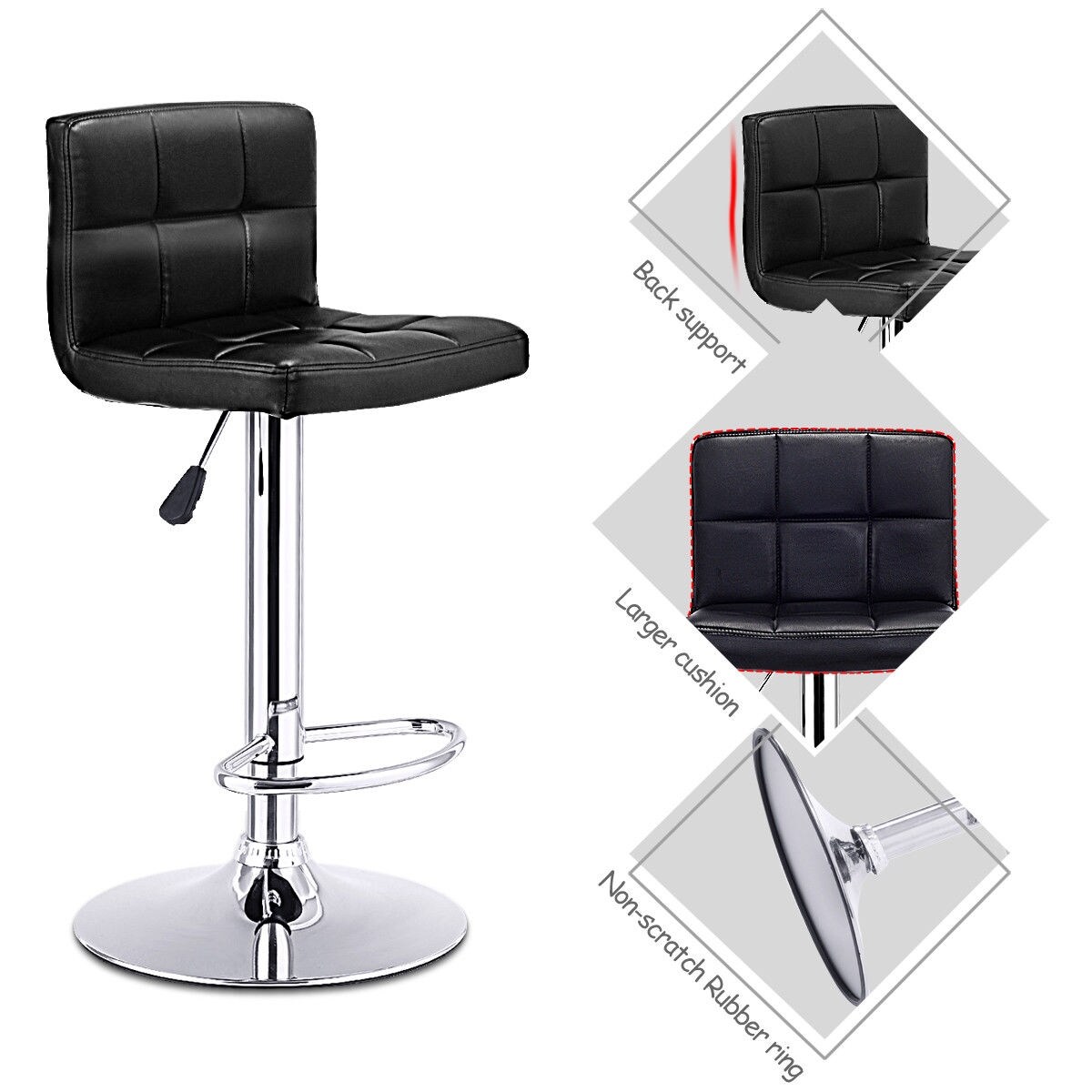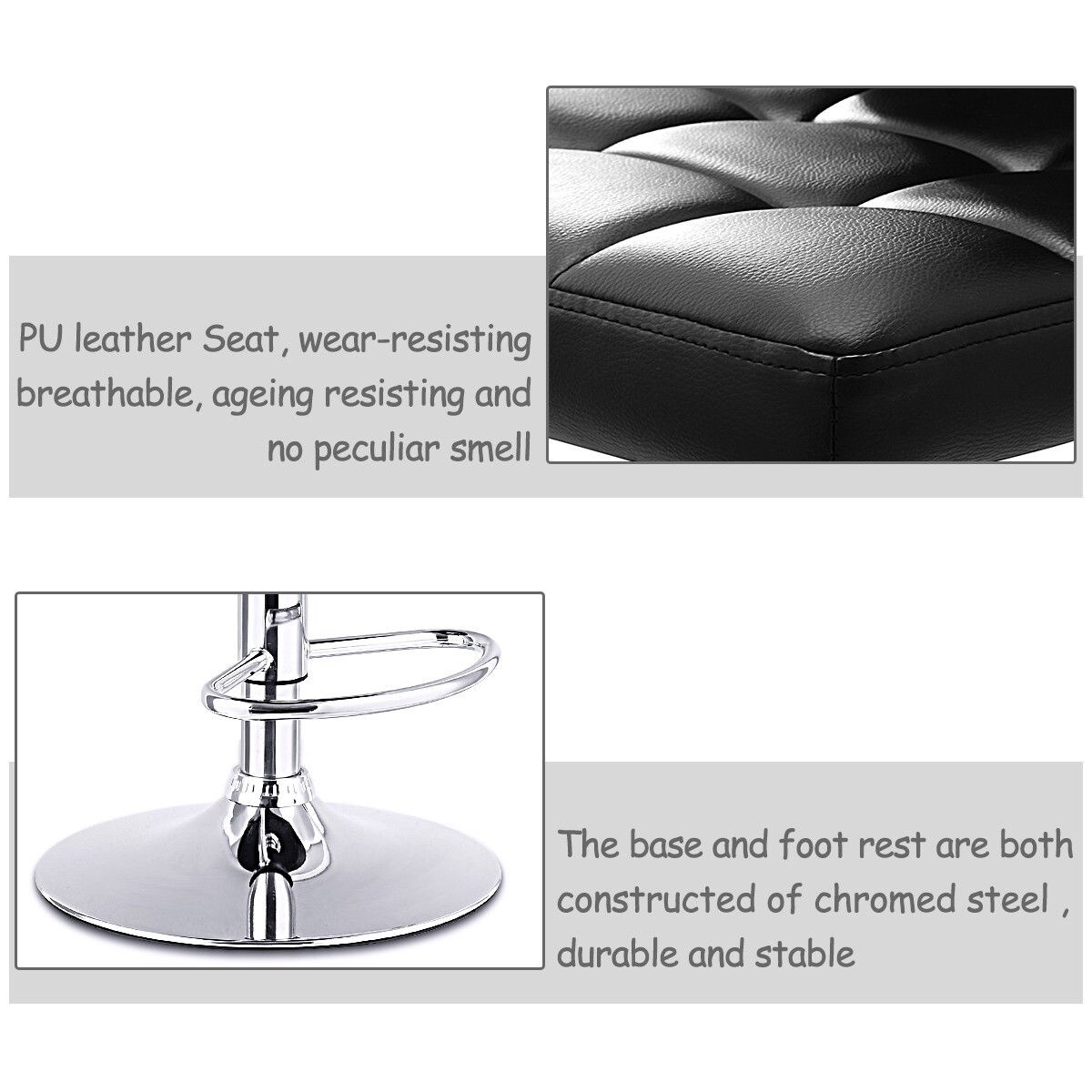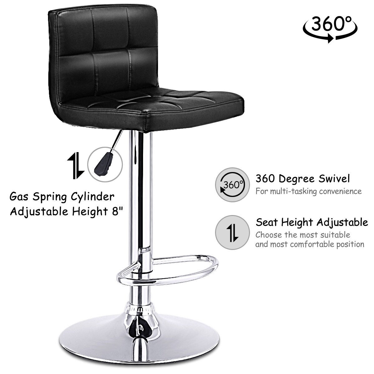 Black Adjustable PU Leather Bar stool Swivel Bistro Chair