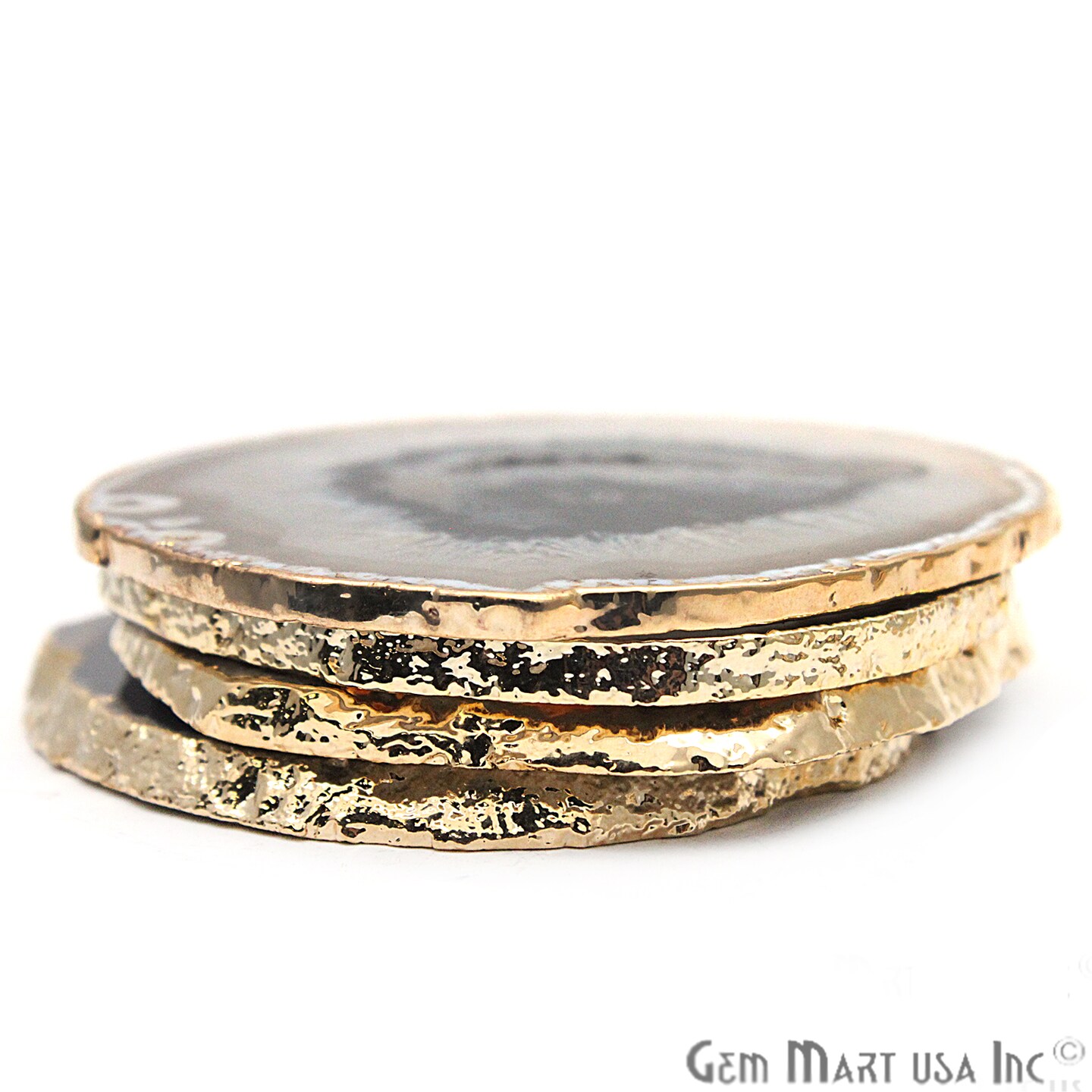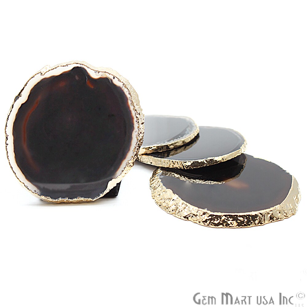 Black Agate Coasters, Drinkware Coasters, Electroplated Agate Slice Home Décor, Agate Canvas, 1PC, GemMartUSA (BKCO)