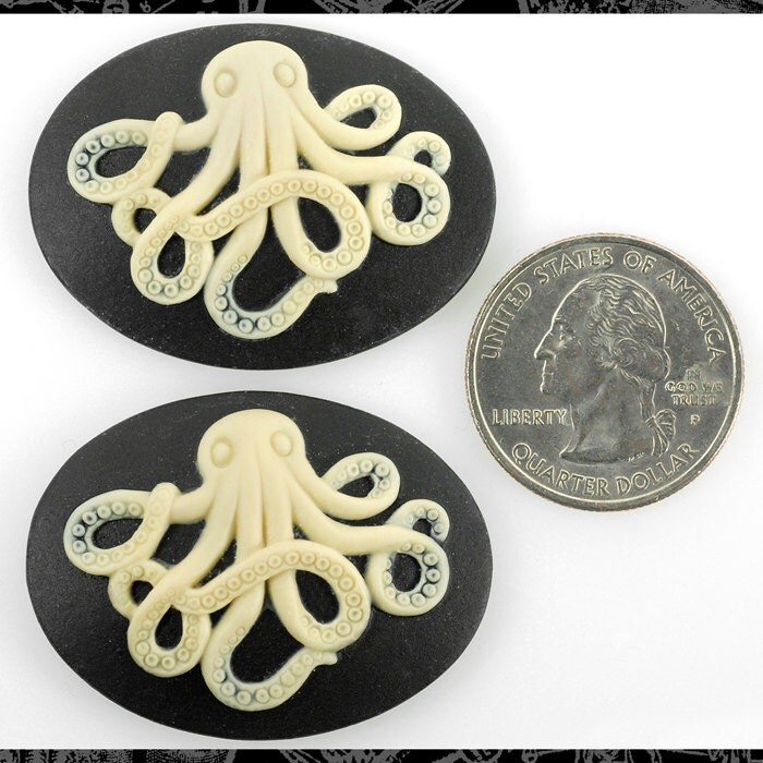 Black and Cream Octopus Cameos 30mm x 40mm Cameos - Set of Two - CAM102