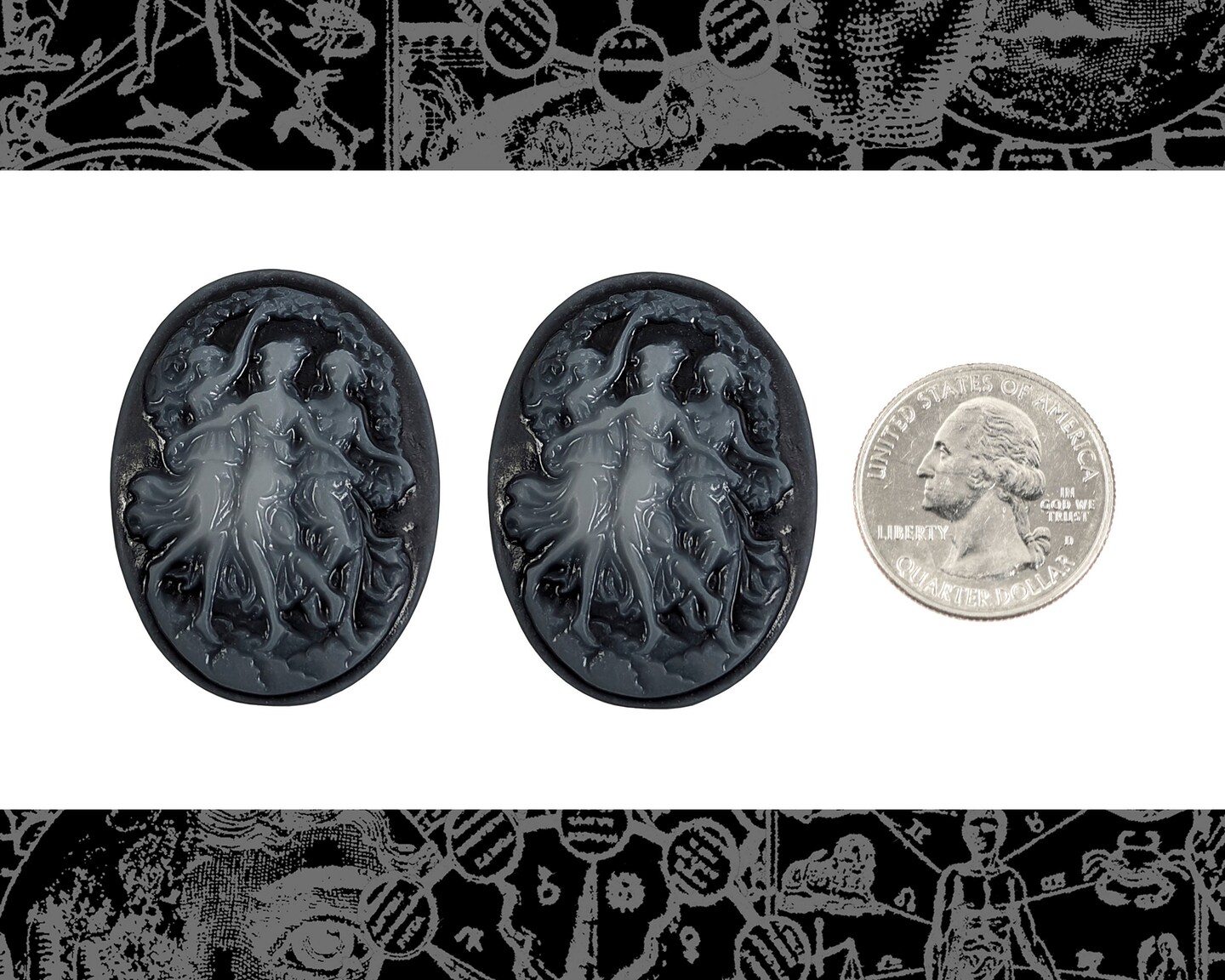Black and Ghost White Three Women Dancing Cameos 35mm x 26mm Cameos - Set of Two - CAM288