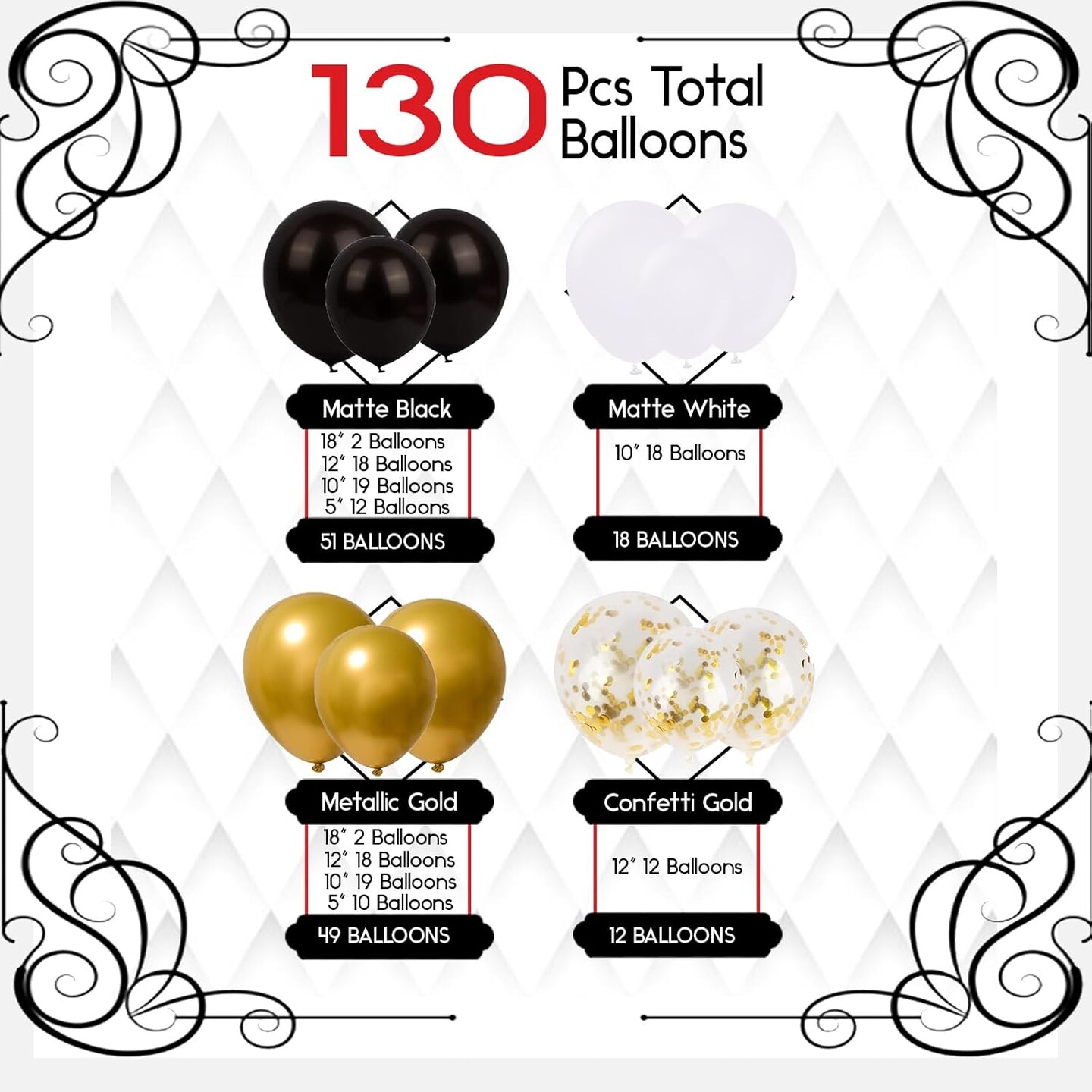 Black and Gold Balloons Arch Kit