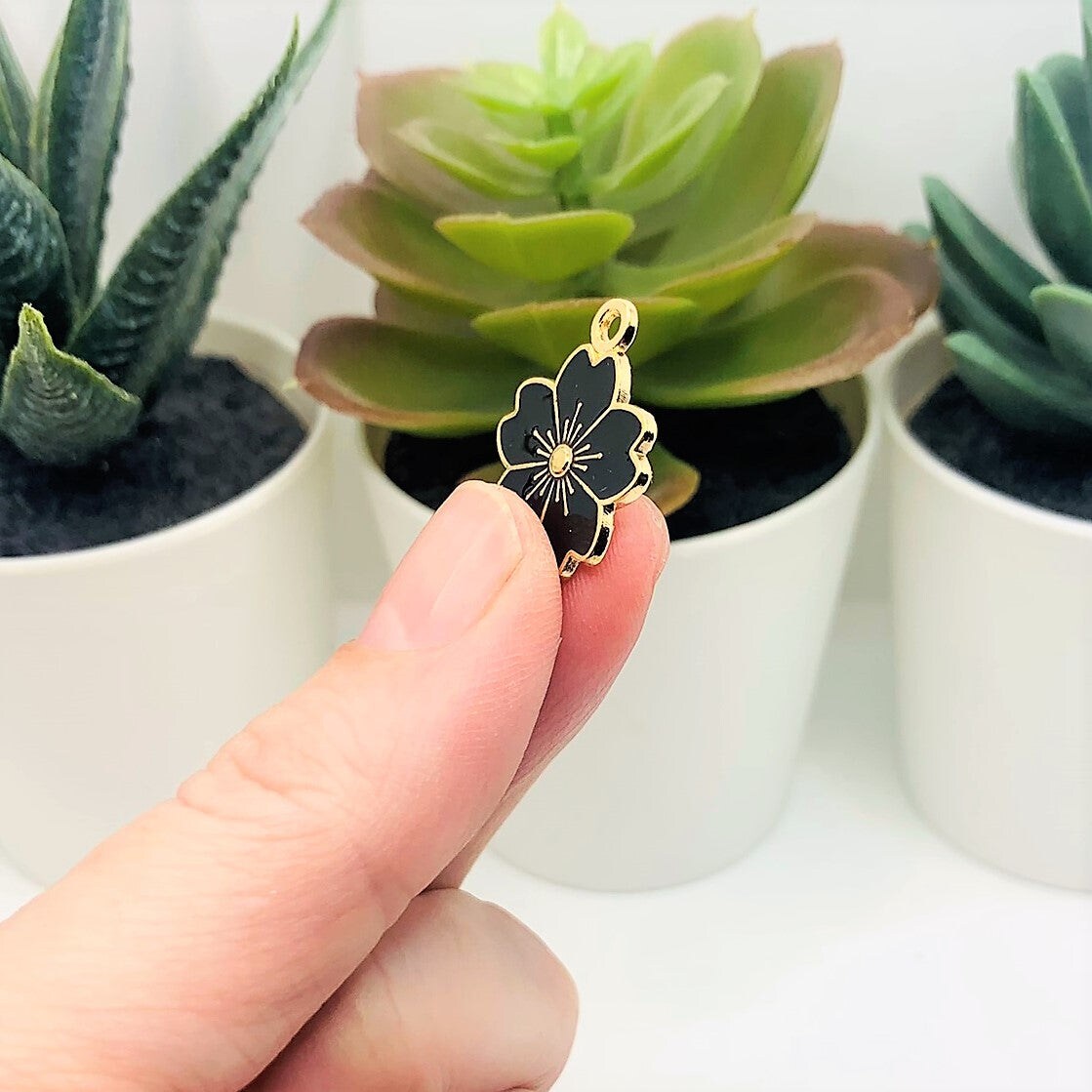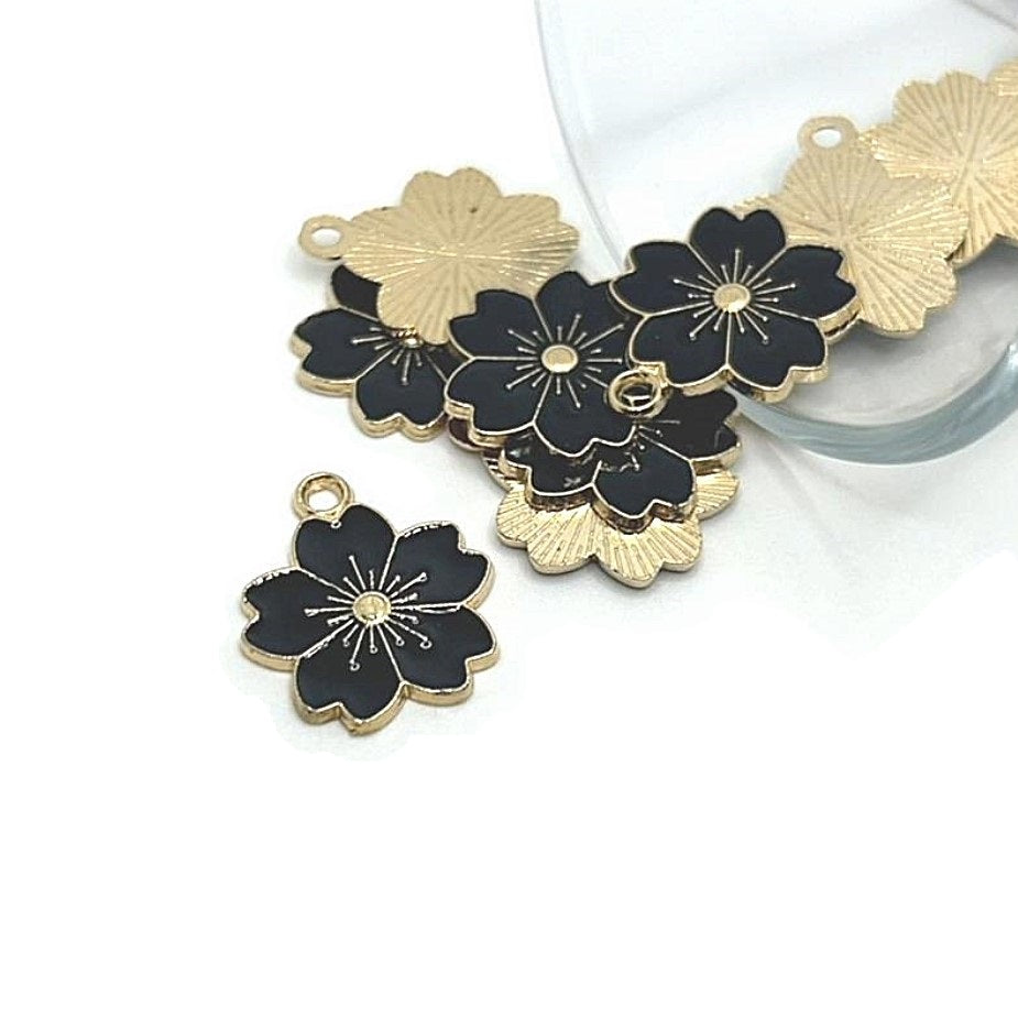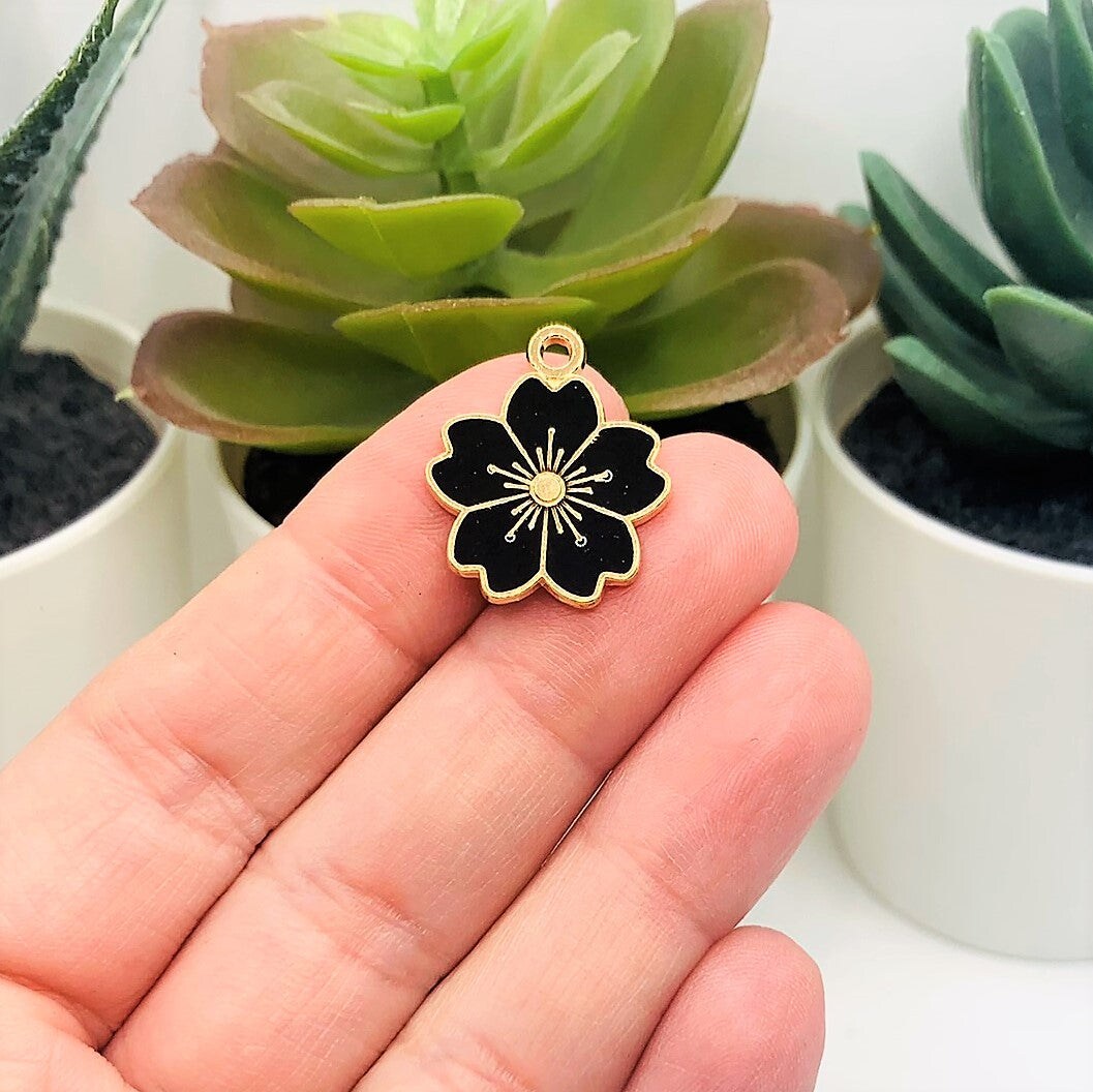 Black and Gold Cherry Blossom Flower Charms, 20.5x17.5mm