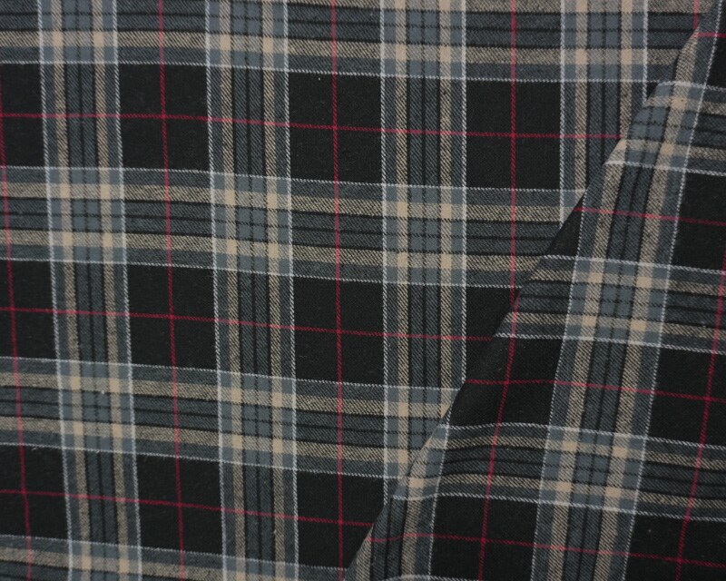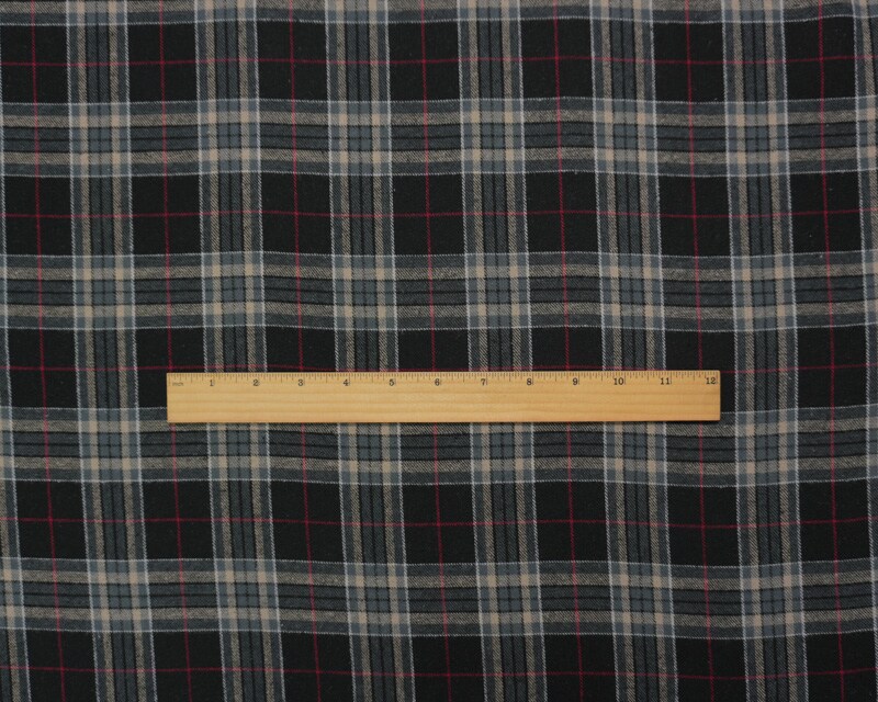Black and Tan Multi Yarn Dyed Plaid Flannel Fabric By the Yard