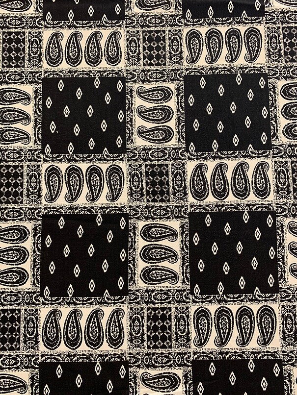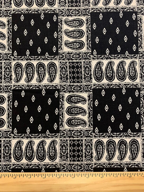 Black and White Bandana Print Rayon Challis Fabric By the Yard