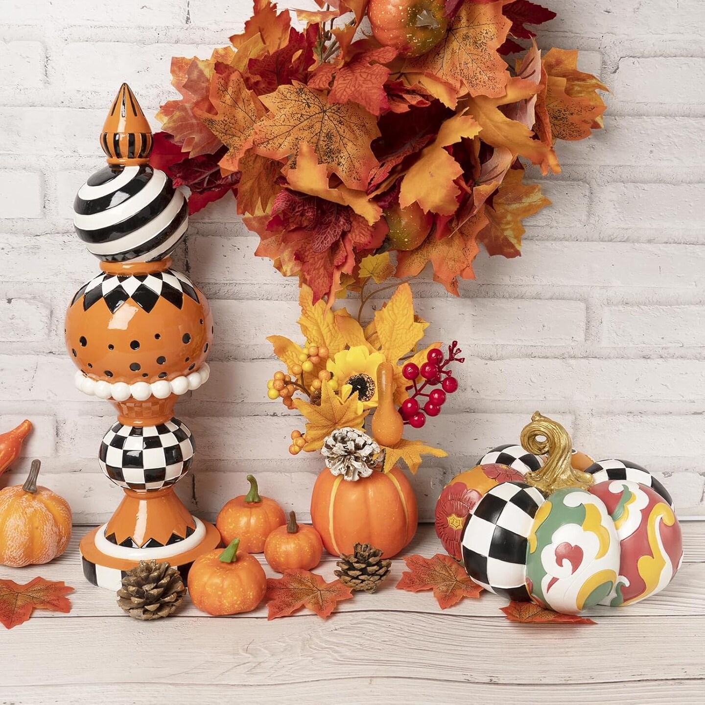 Black and White Checkered Pumpkin for Decorating, 8 in Resin Fall
