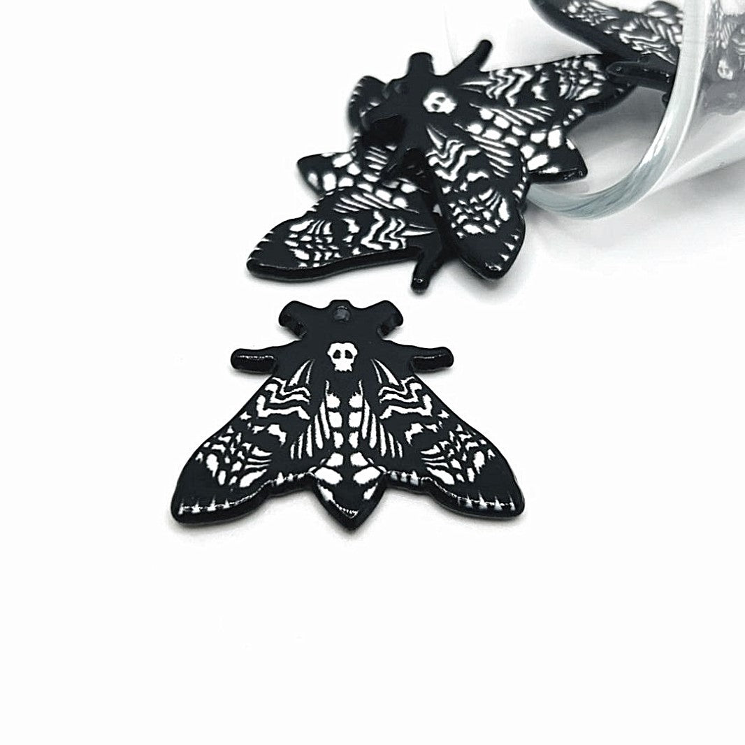 Black and White Deaths Head Moth Charms, 28.4x36mm