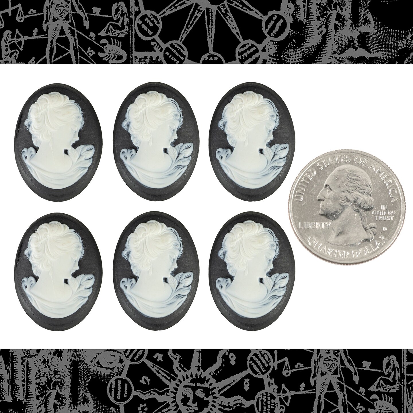 Black and White Feminine Profile 25mm x 18mm Resin Cameos - Set of Six - CAM267