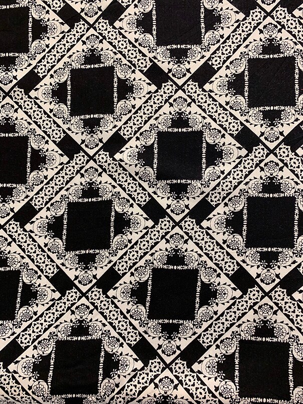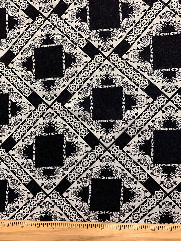 Black and White Lace Look Print Rayon Challis Fabric By the Yard