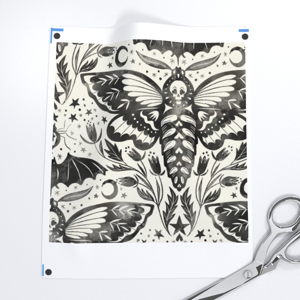 Black And White Moth Bat Flower Stars Ink Watercolor Moon Ghosts October Gothic Halloween Custom Removable Wallpaper by Spoonflower Peel & Stick Wallpaper 2FT Wide