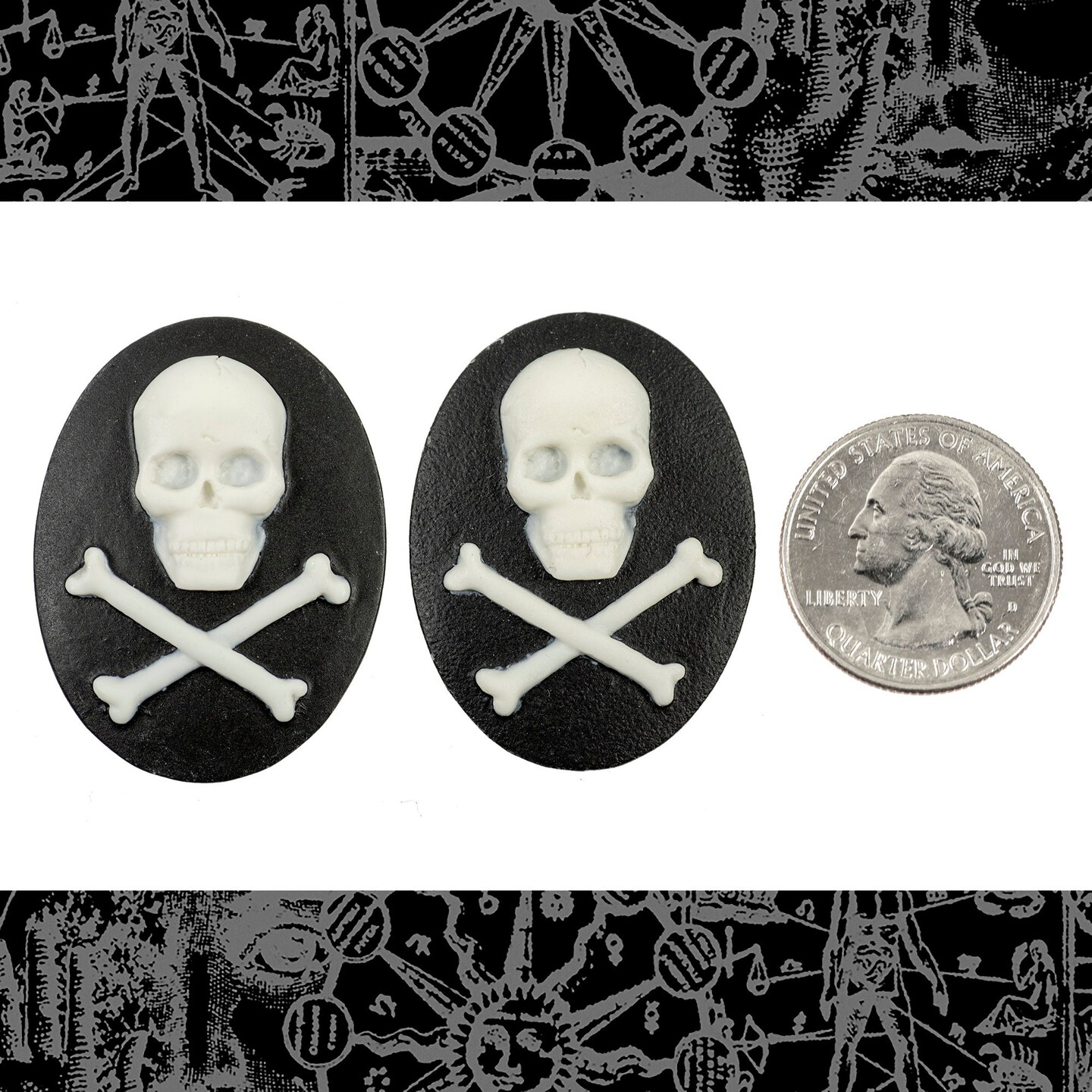 Black and White Skull and Crossbones 30mm x 40mm Cameos - Set of Two - XXX - CAM242