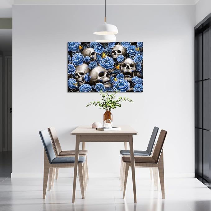 Black and White Skull Wall Art Skull Head Skeleton Painting Vintage Sugar Skull Artwork Wall Decoration for Home Living Room Bedroom the Day of Dead