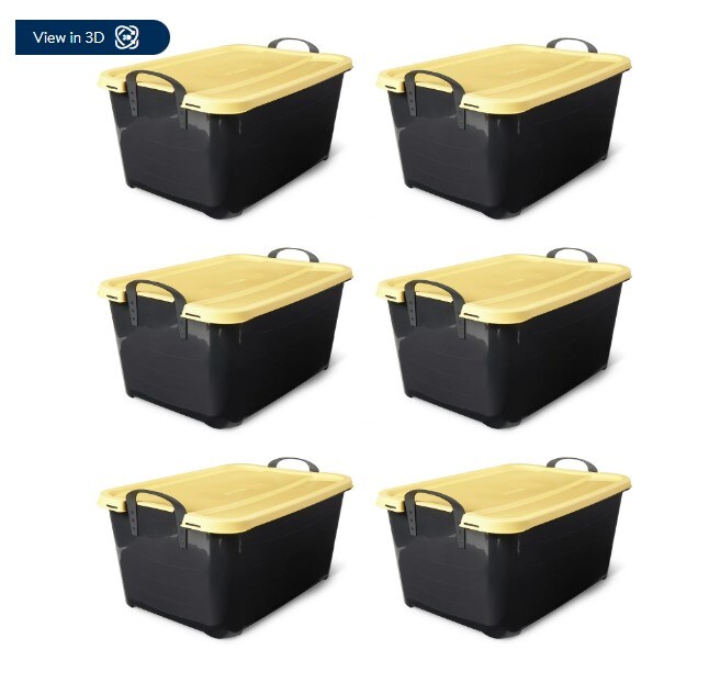 Black and Yellow 55 Quart Plastic Stackable Storage Unit Bin (6 Pack)