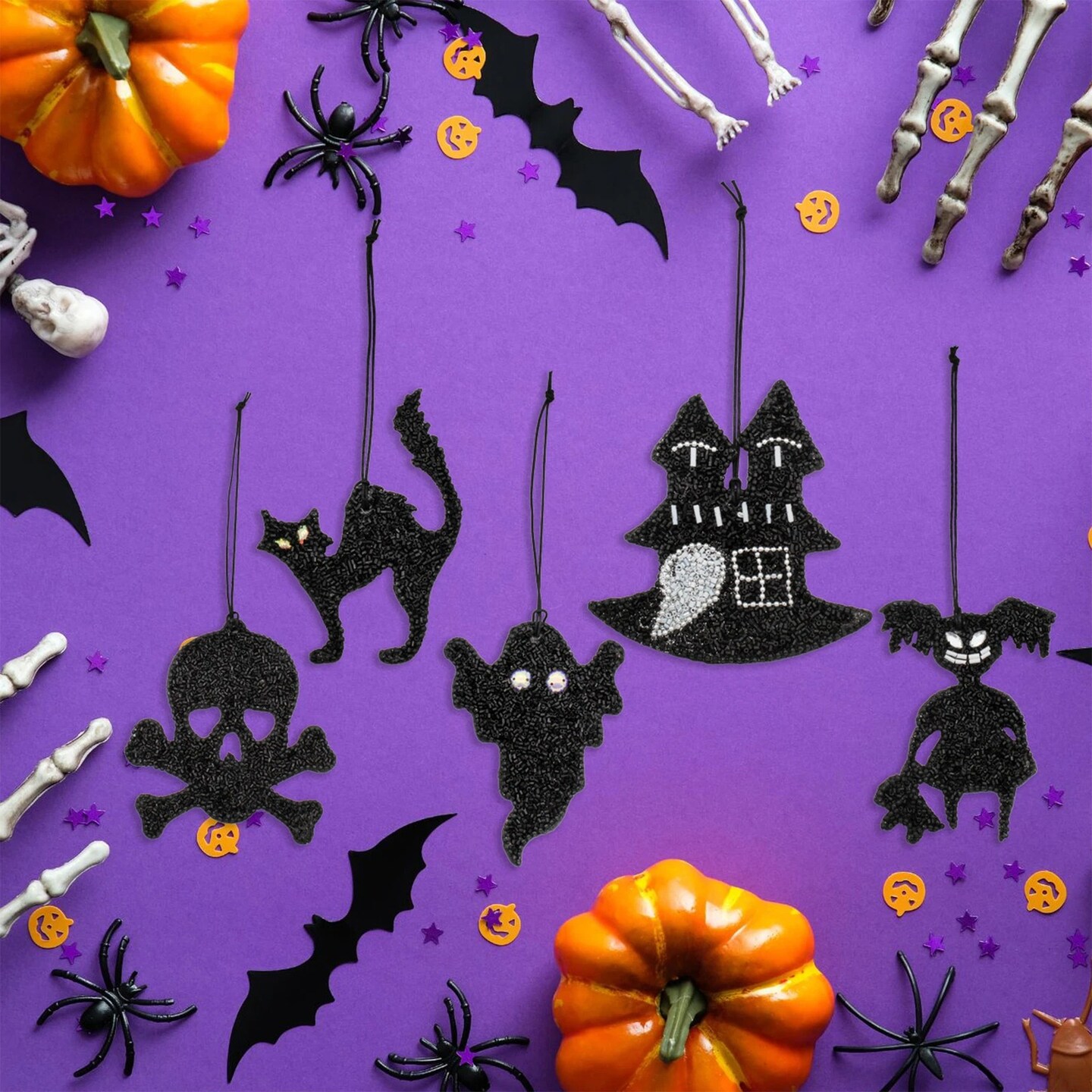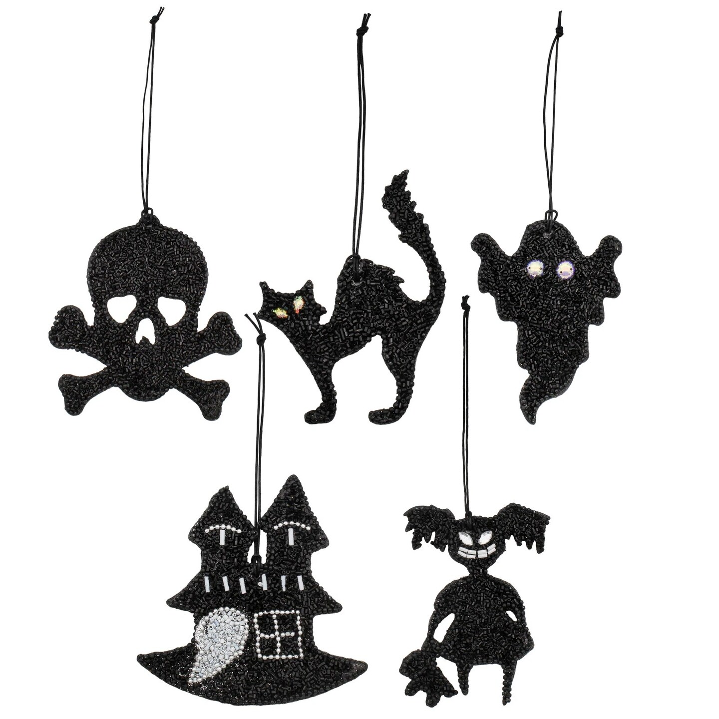 Black Beaded Halloween Ornaments 5ct Reversible Tree Decor Set