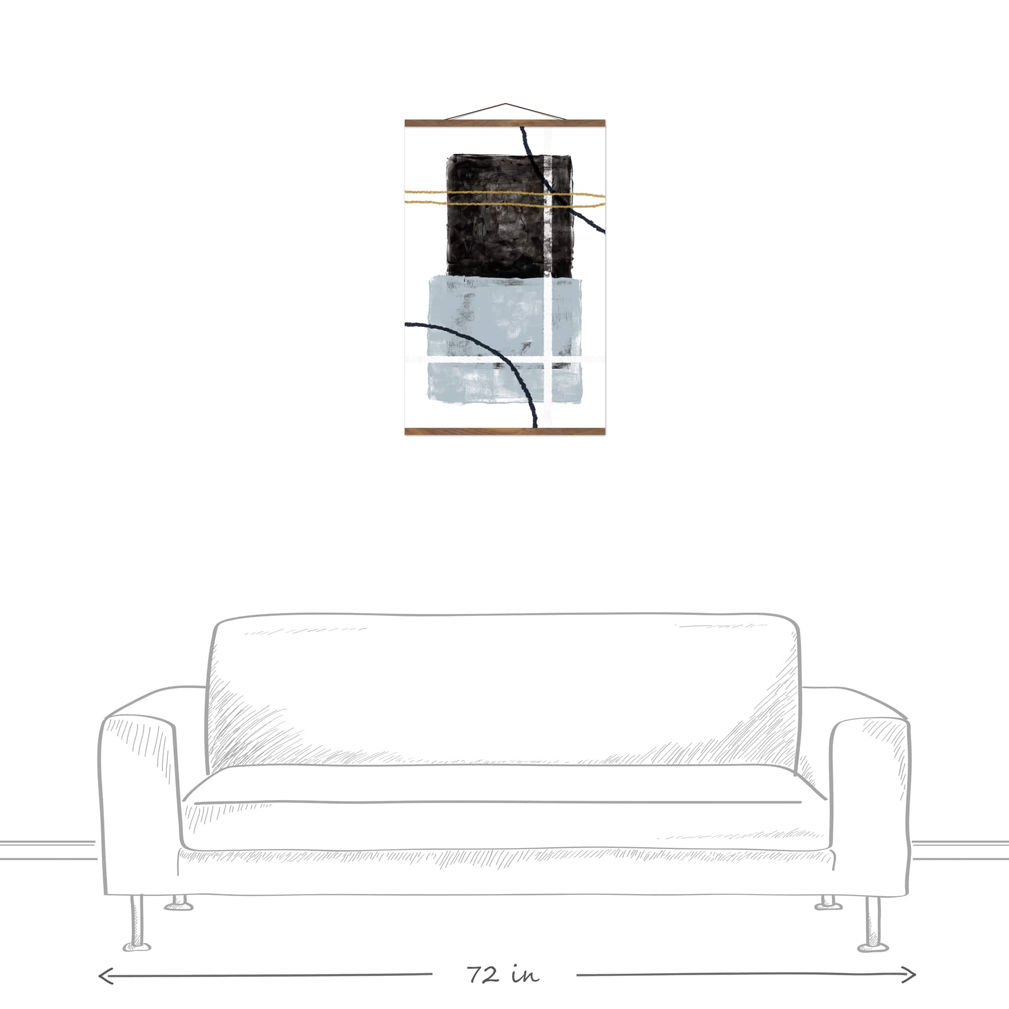Black Blue Abstract 20" x 30" Teak Hanging Canvas