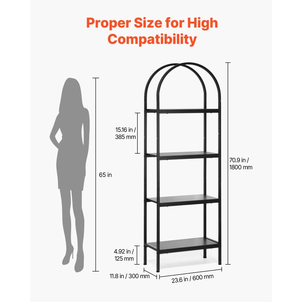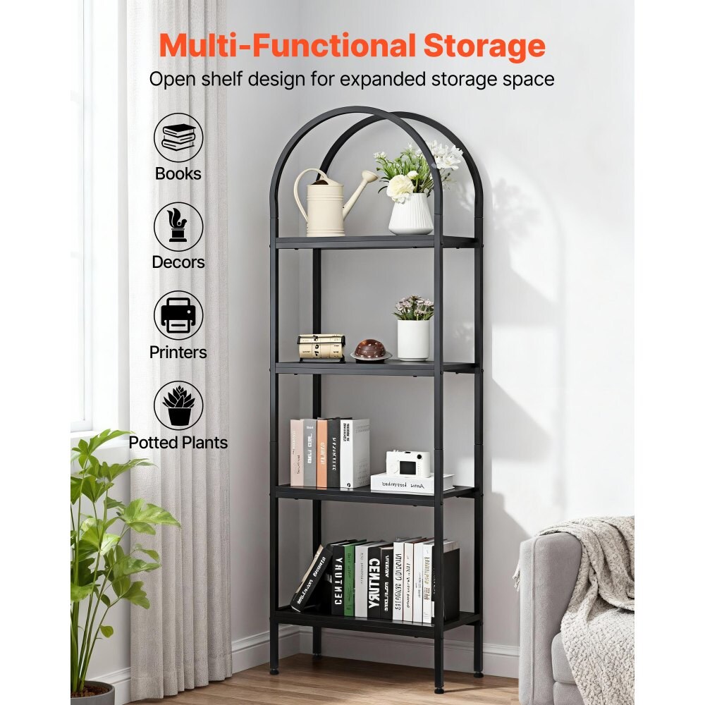 Black Carbon Steel 4-Tier Bookshelf MDF Shelves Modern Storage Rack