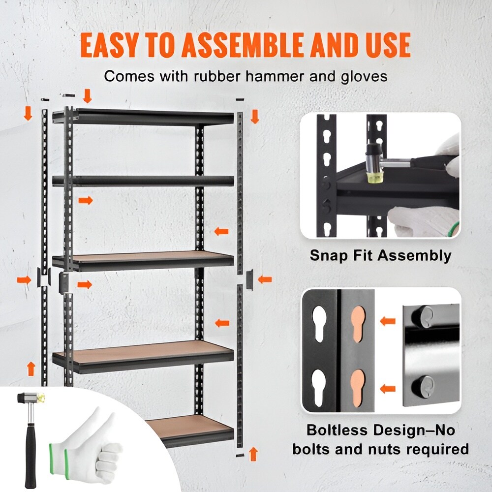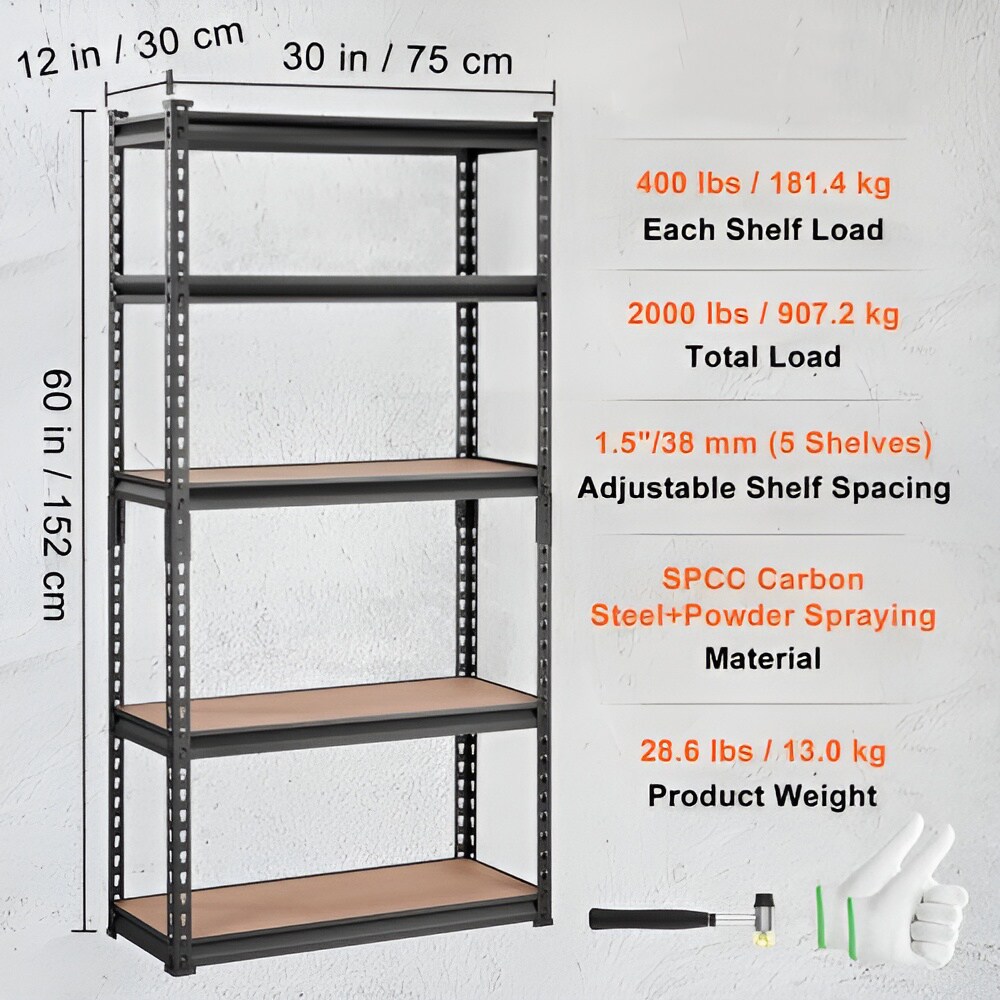 Black Carbon Steel Adjustable 5-Tier Garage Storage Rack with MDF Shelves
