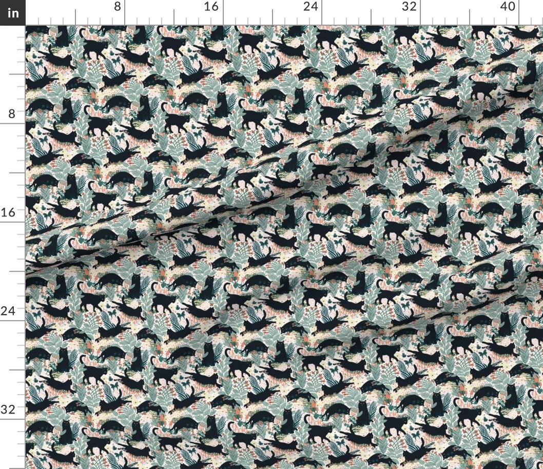 Black Cat Butterfly Garden Small Green Flowers Red Kitten Custom Printed Fabric by Spoonflower Various Fabrics by the Yard or Fat Quarter