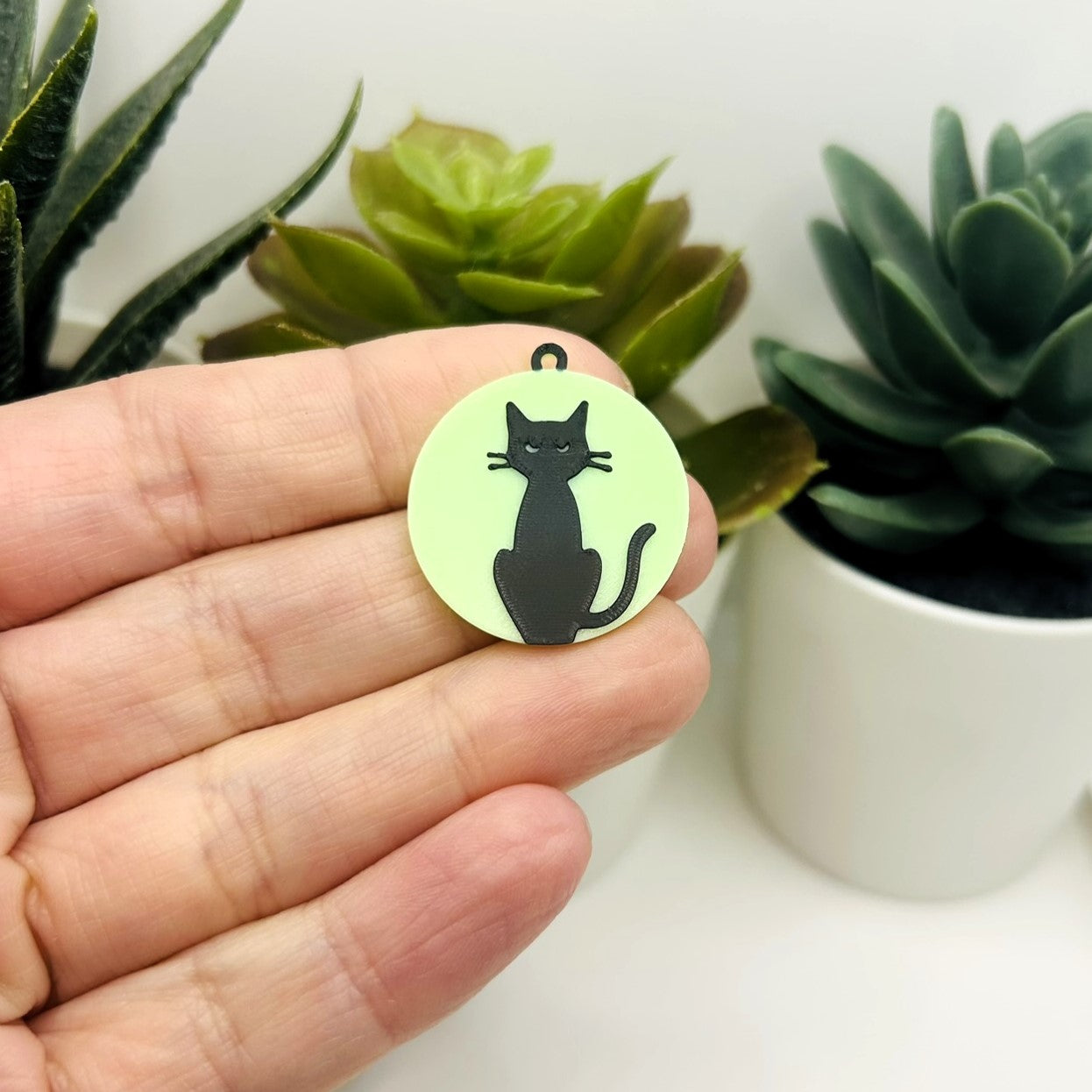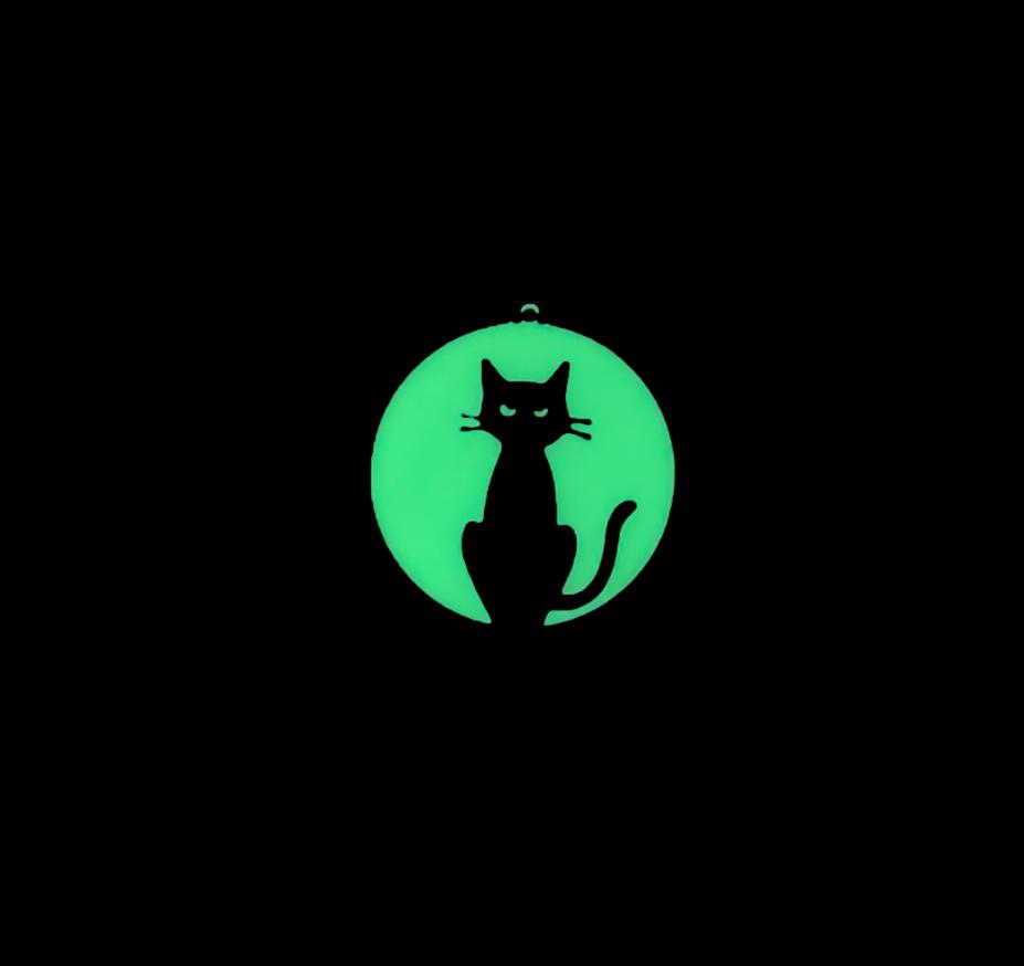 Black Cat on Glow in the Dark Moon Charms, 25x27mm