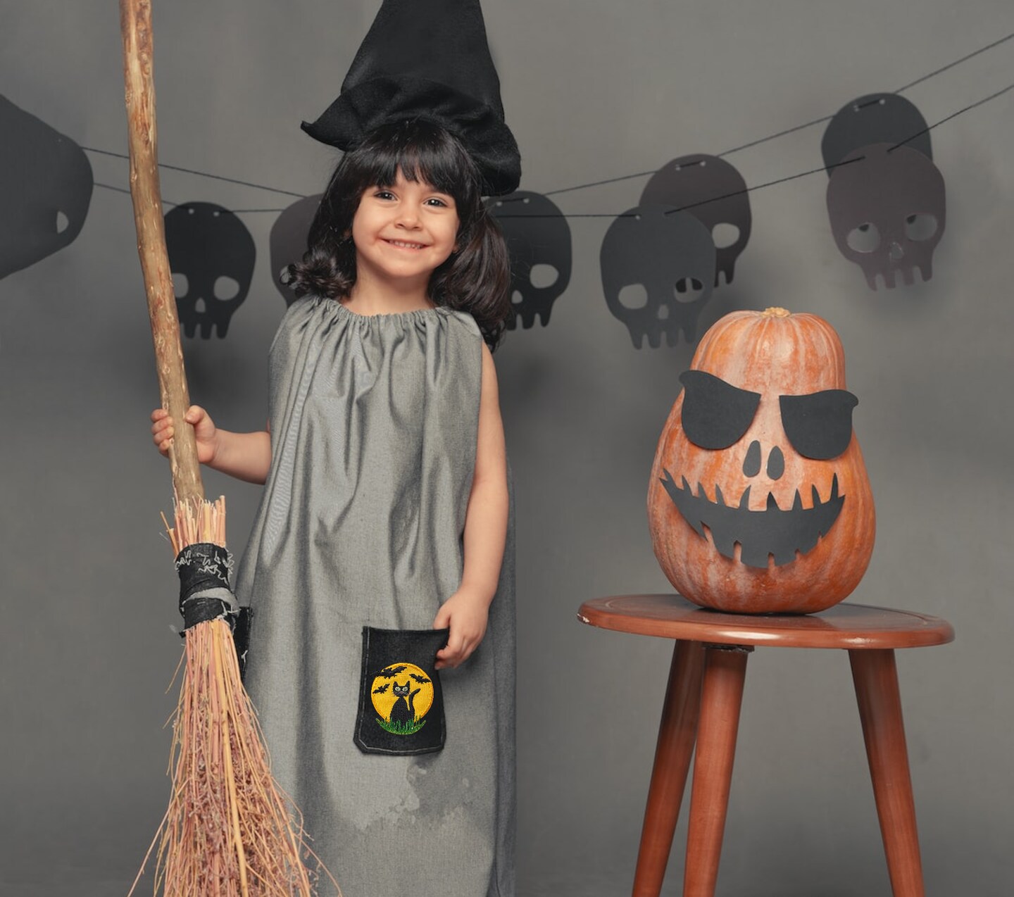 Black Cat with Full Moon, Halloween, Embroidered, Iron on Patch