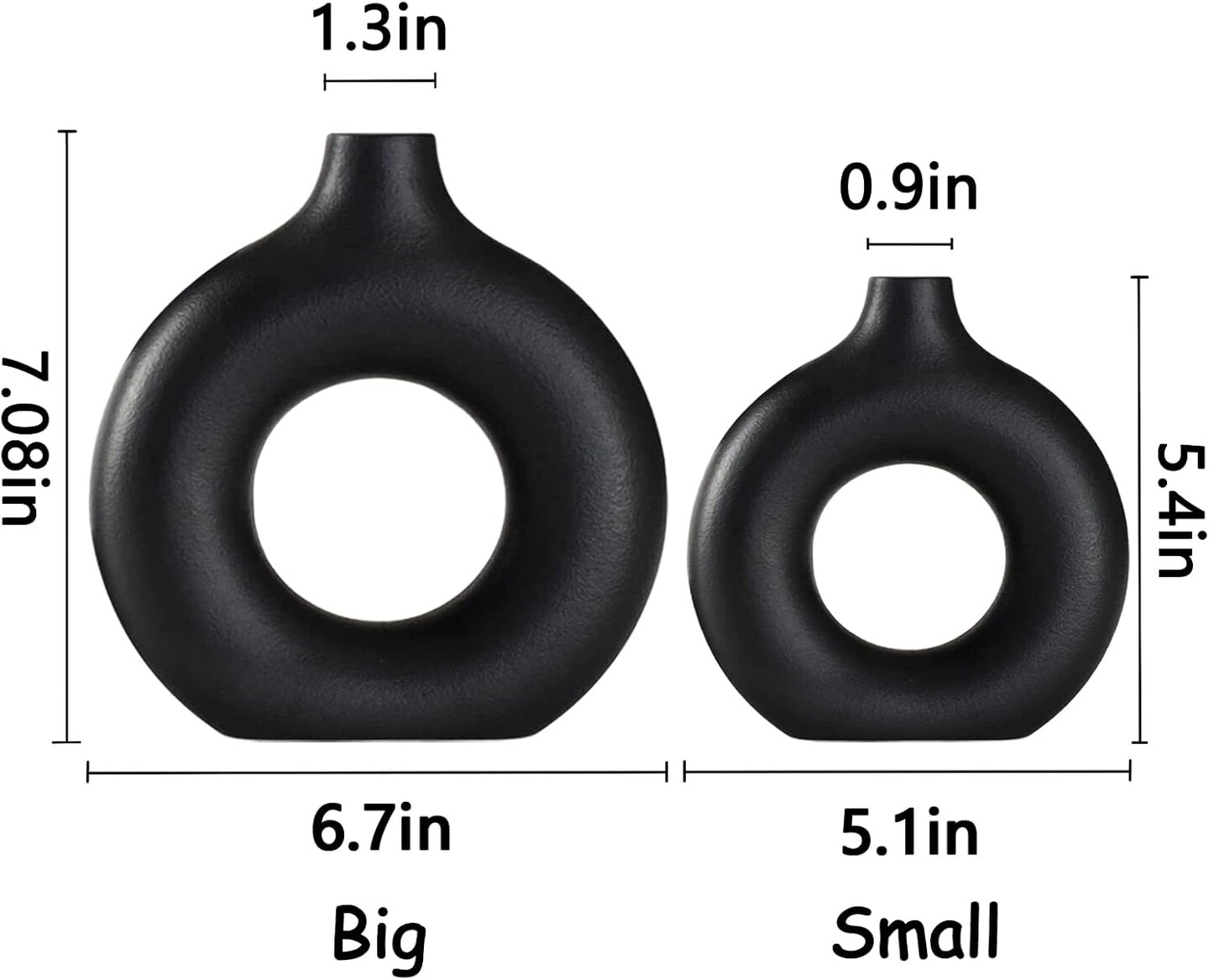Black Ceramic Vase – Modern Round Matte Pampas Flower Vase for Nordic Boho Décor, Wedding, Dinner Table, Party, Living Room, Office, Bedroom & Decorative Gift