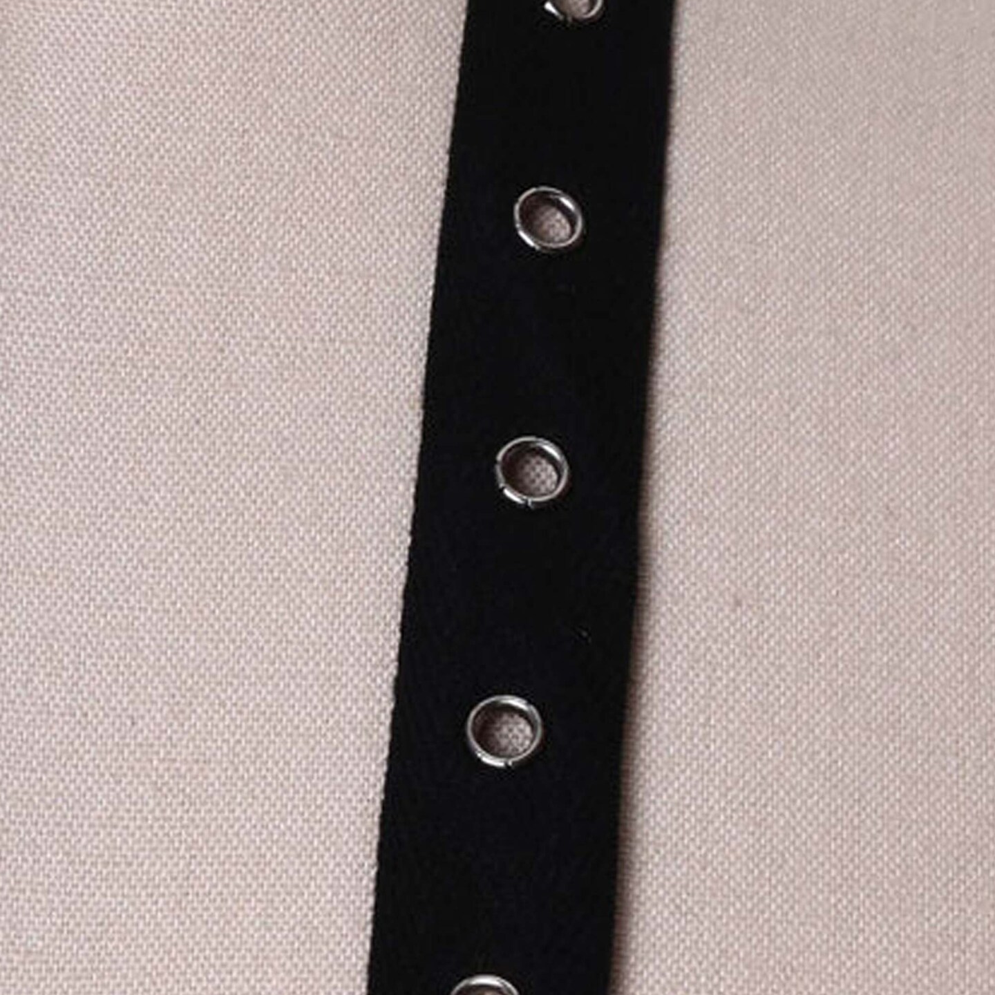 Black Cotton Grommet Tape 0.75" Twill Trim with Silver Eyelets for Sewing & Crafts