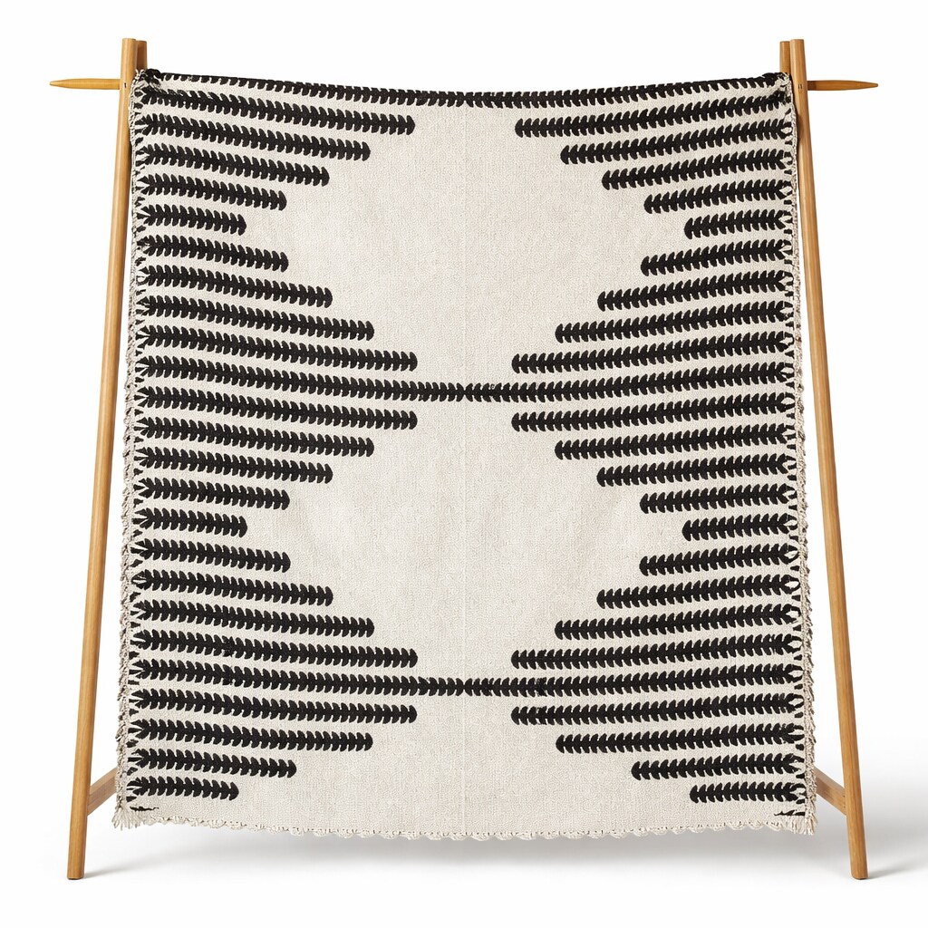 Black & Cream Bohemian Chenille Throw Blanket with Fringe, 71" x 71"