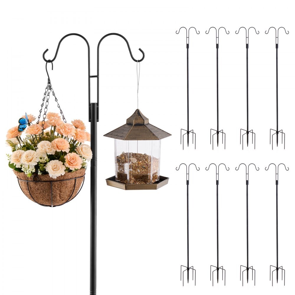 Black Dual-Hook Bird Feeder Poles with Rust-Resistant Steel and 8pcs Set