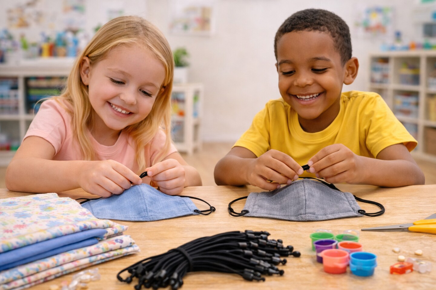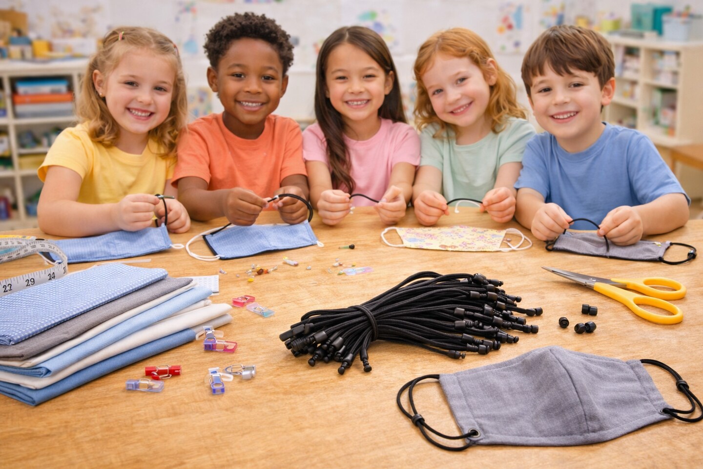 Black Elastic Mask Strings 9" – Adjustable Cord Loops with Beads, 100 Pack for DIY Face Masks & Sewing Crafts