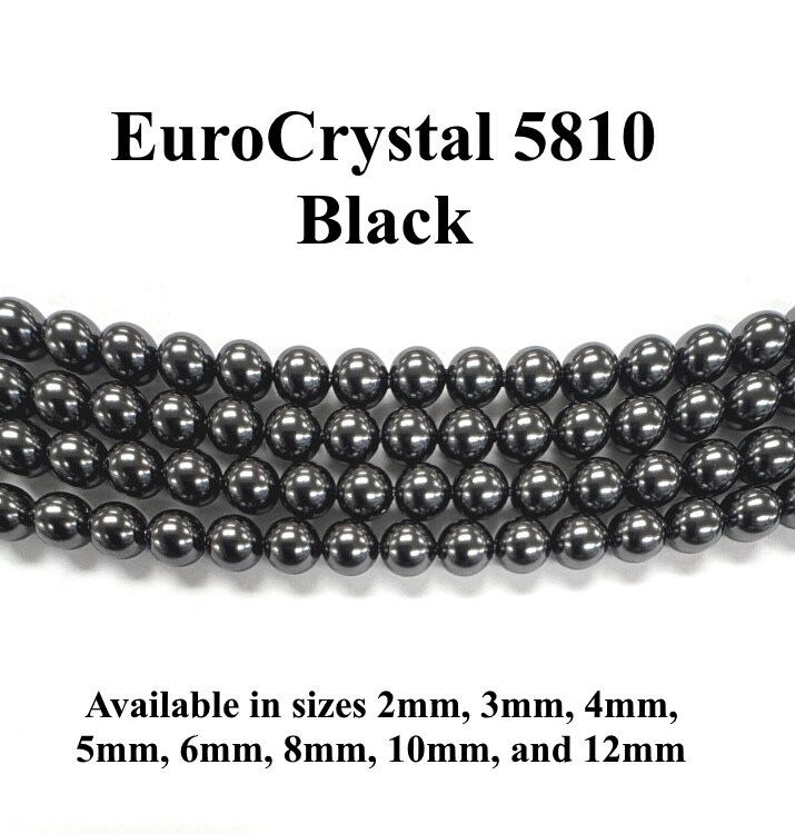 Black EuroCrystal 5810 Round Pearls - 2mm, 3mm, 4mm, 5mm, 6mm, 8mm, 10mm, and 12mm - Strands - Made in Austria