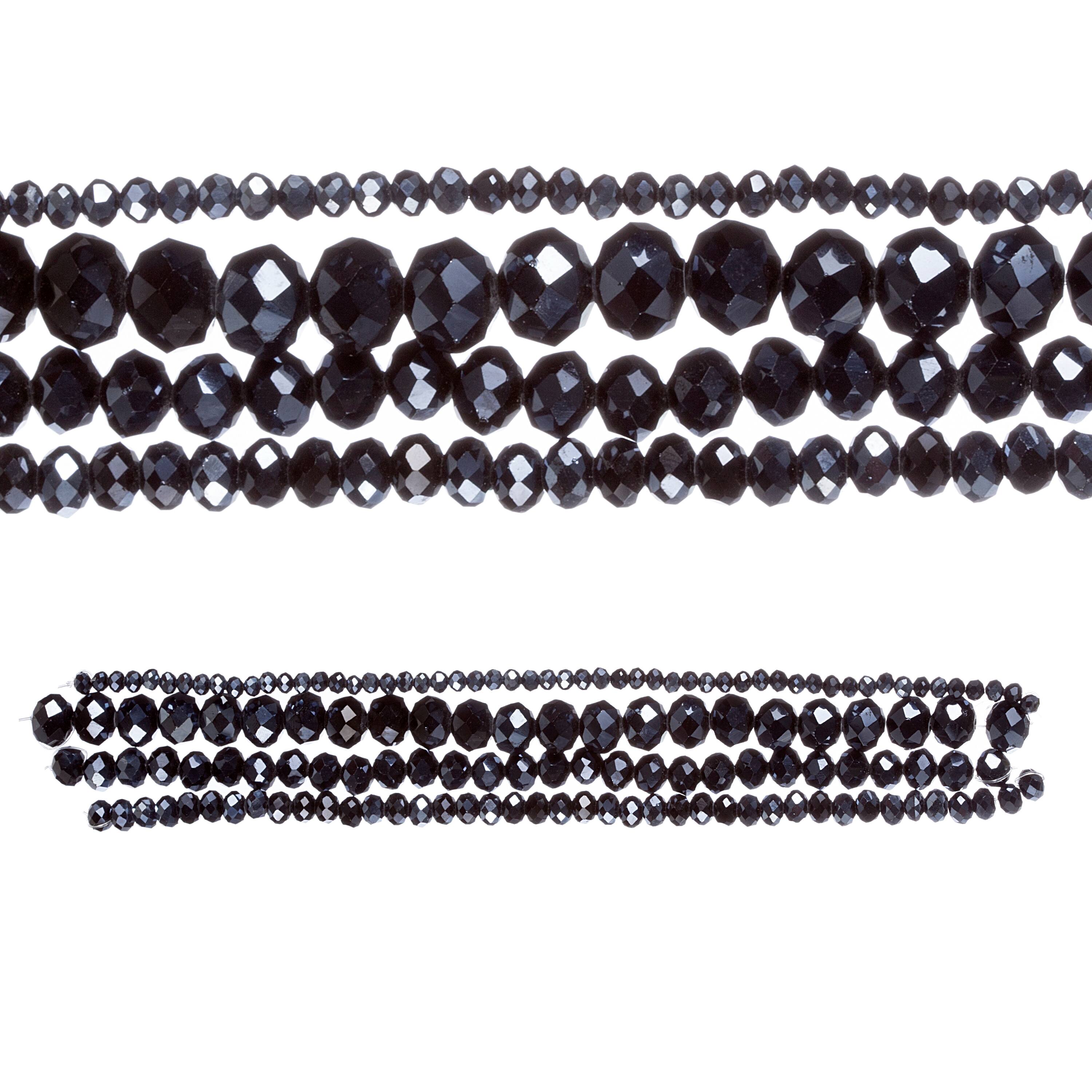 Black Faceted Glass Rondelle Bead Strings by Bead Landing™