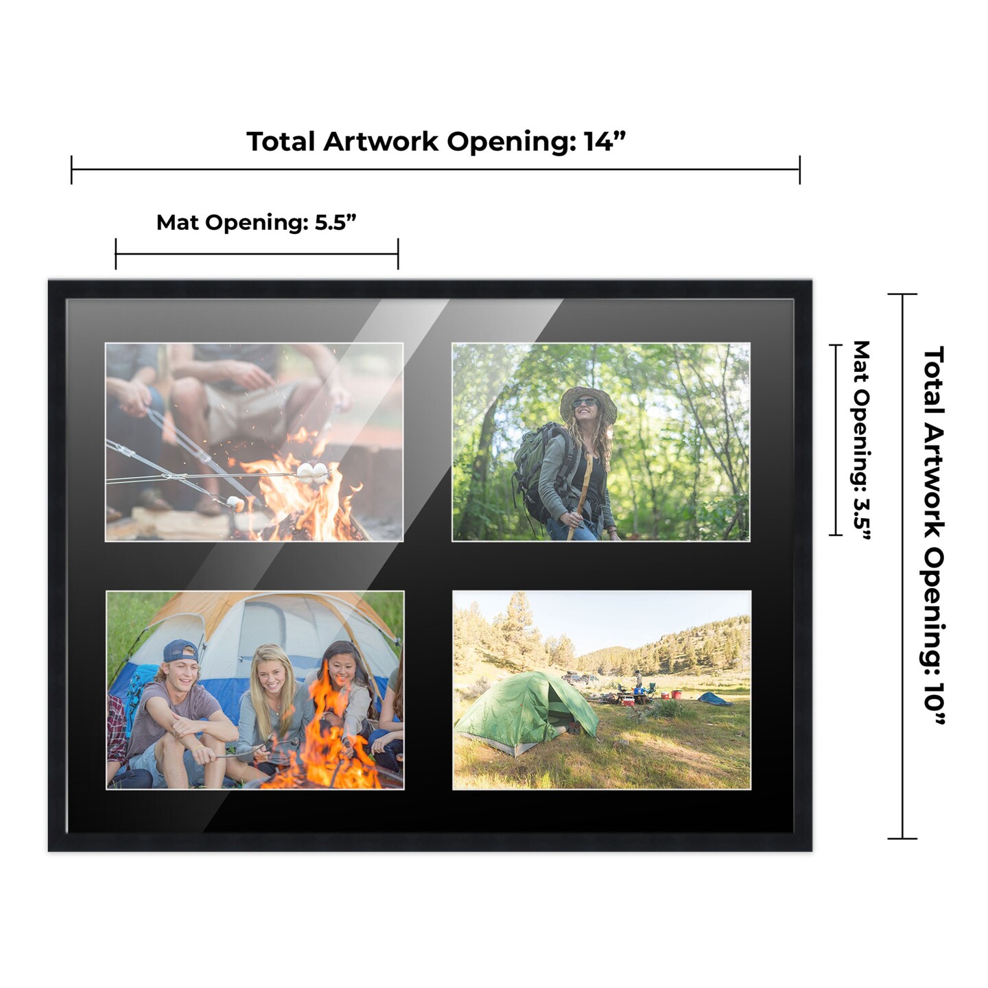 Black Finish Collage Frame - Black Mat, 20 Frame Sizes to Choose From, UV Acrylic, Wall Hanging Hardware, Vertical or Horizontal Display