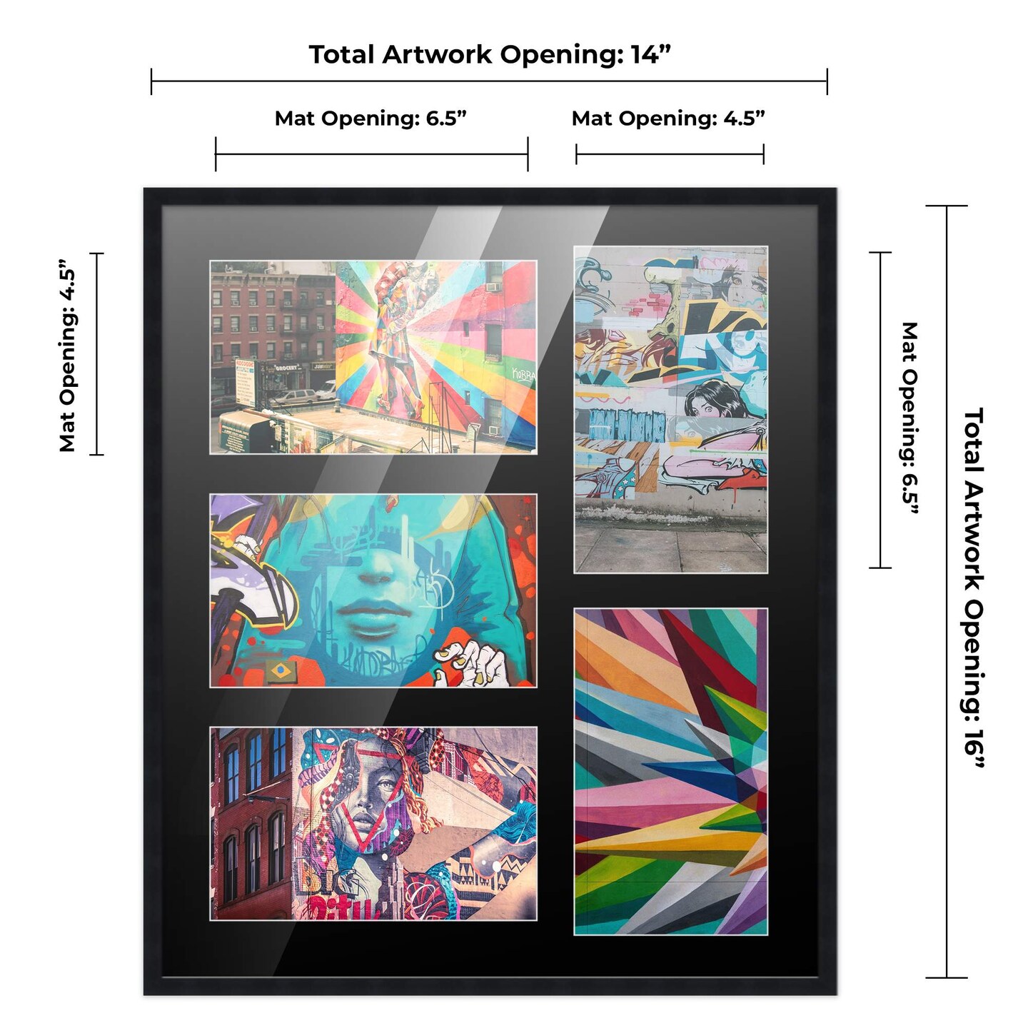 Black Finish Collage Frame - Black Mat, 20 Frame Sizes to Choose From, UV Acrylic, Wall Hanging Hardware, Vertical or Horizontal Display